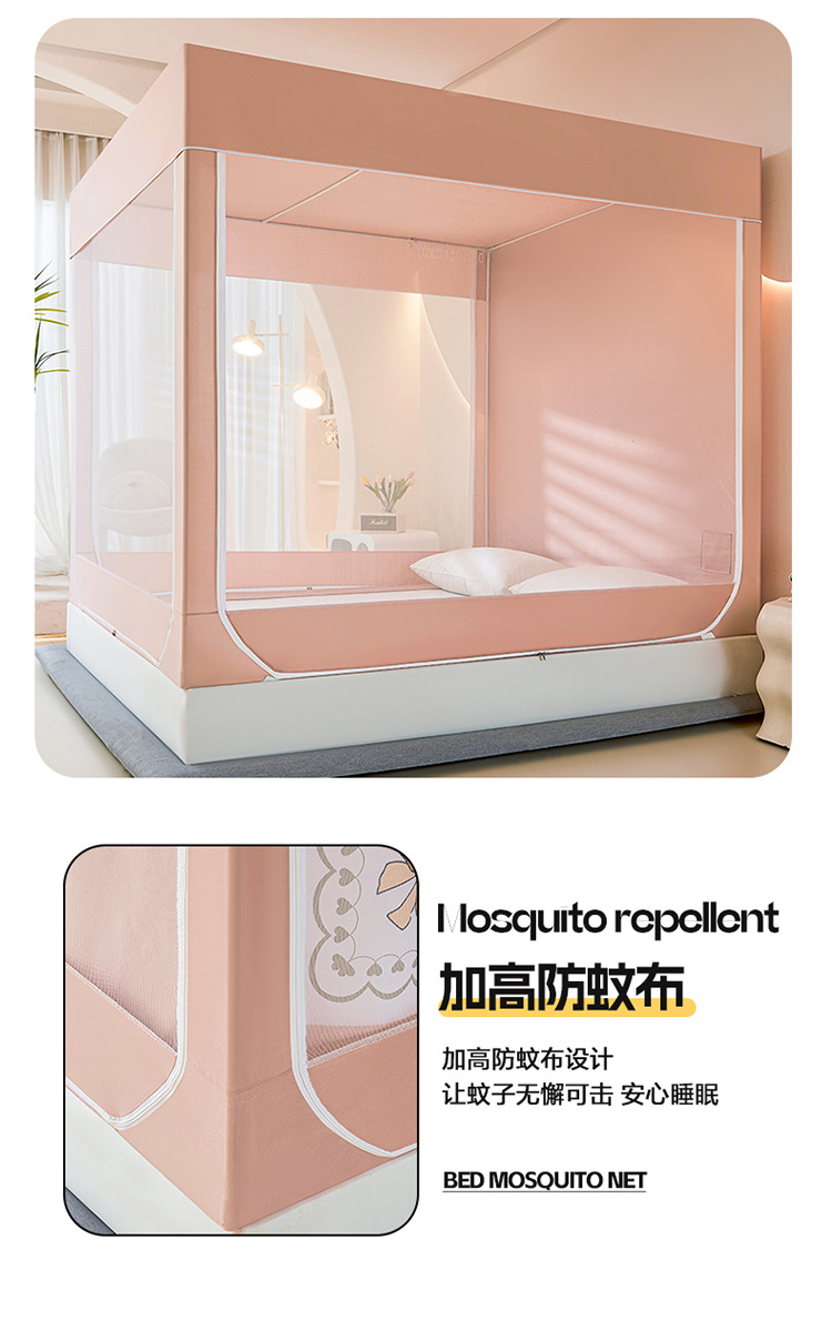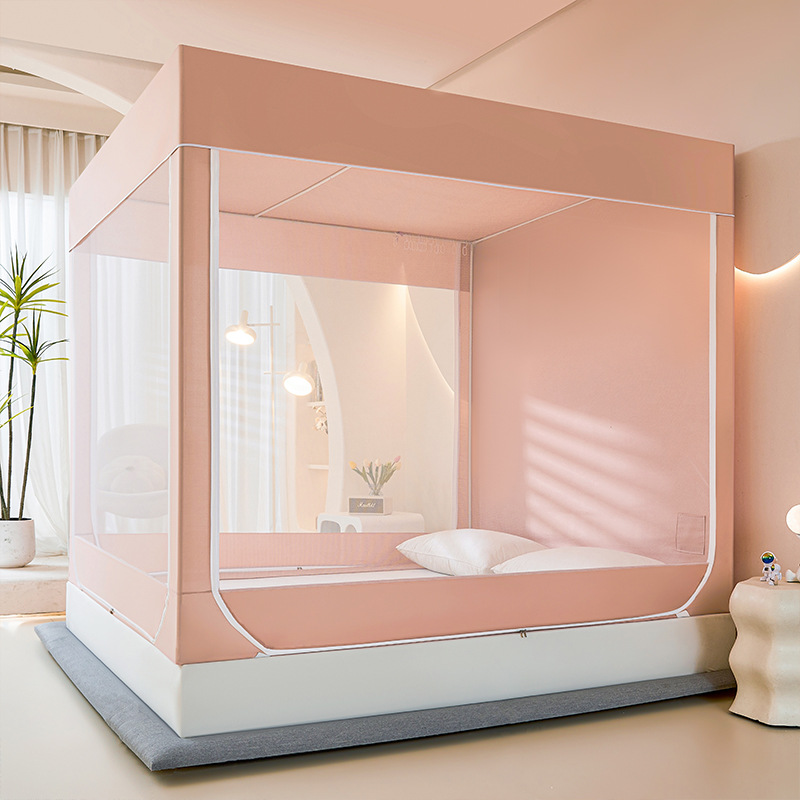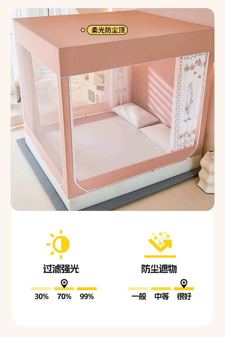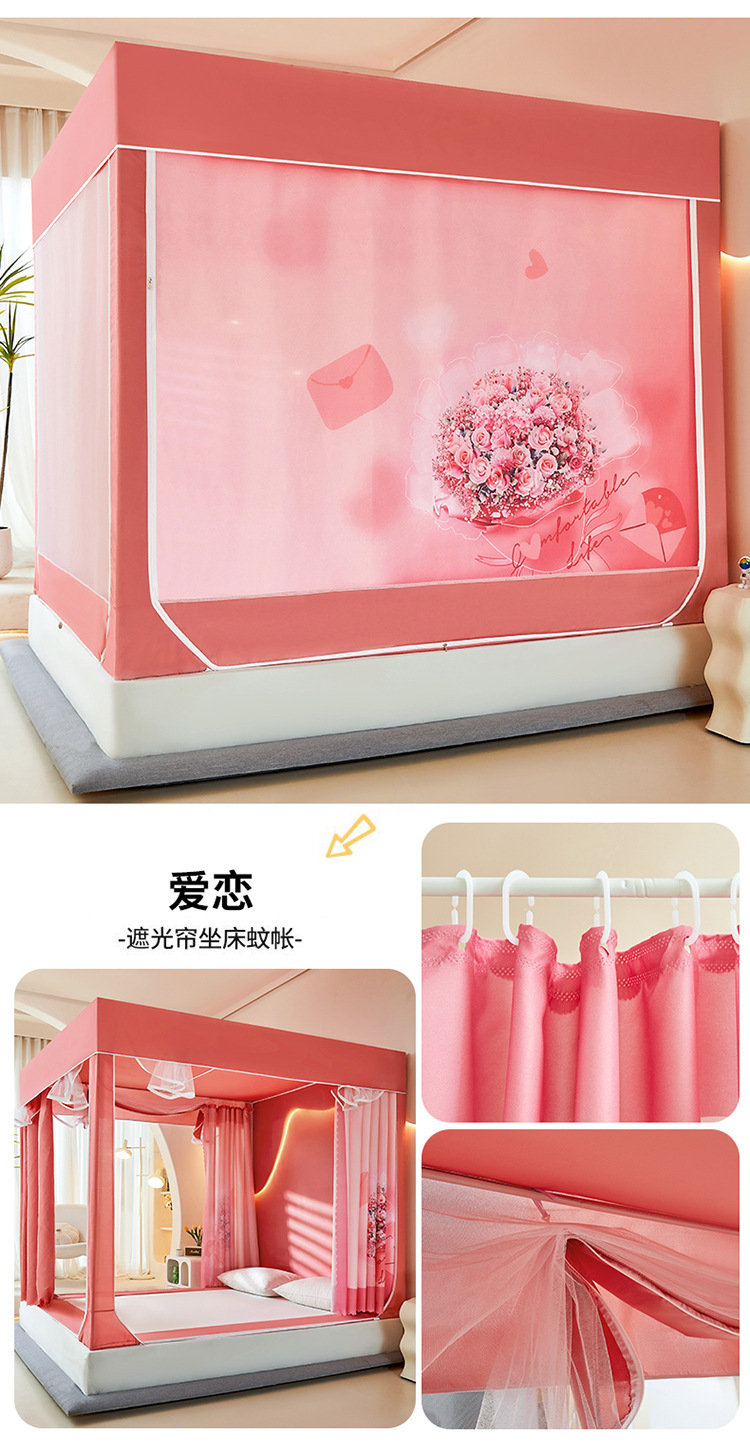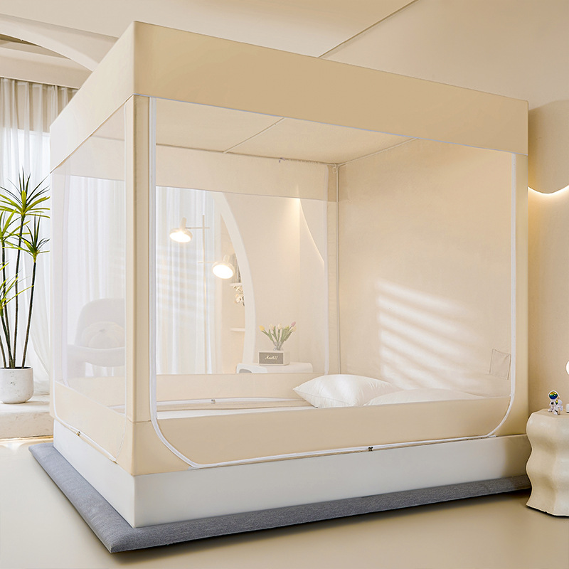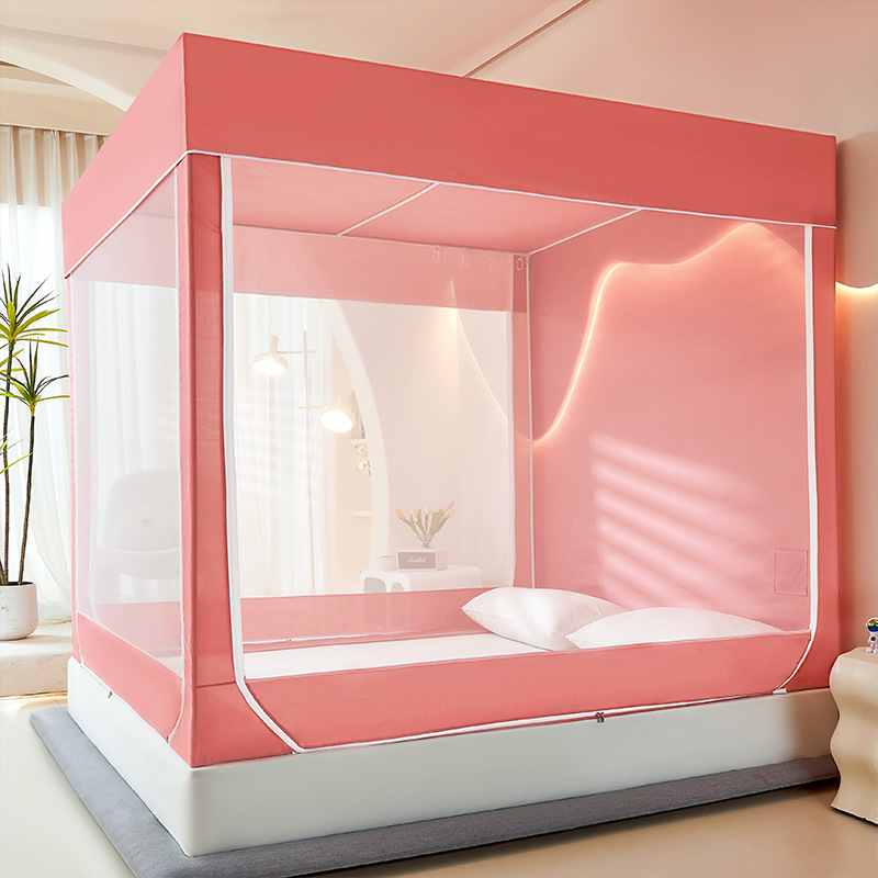 새로운 앉아있는 침대 음영 모기장 몽골 3 도어 가정용 침대 커튼 완전히 닫힌 앞 유리 자체 연결 브래킷 다시 아래로