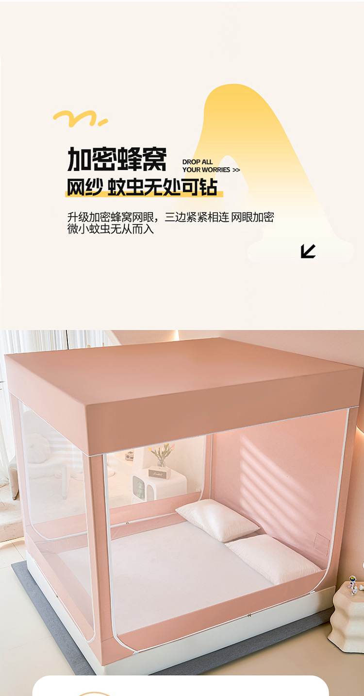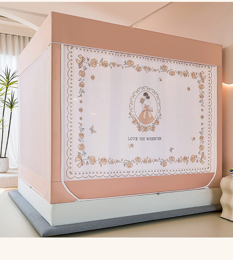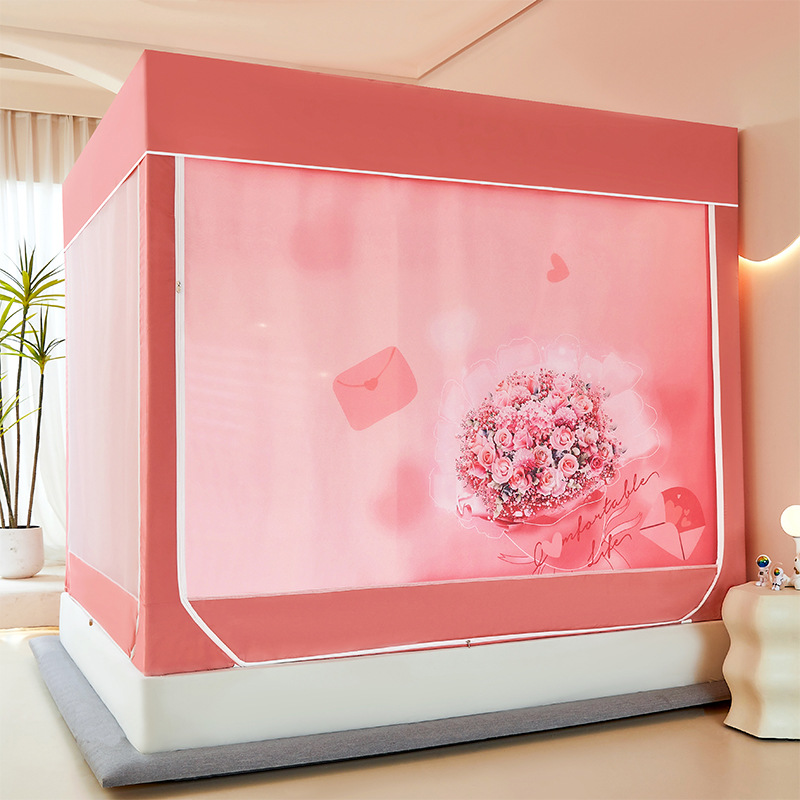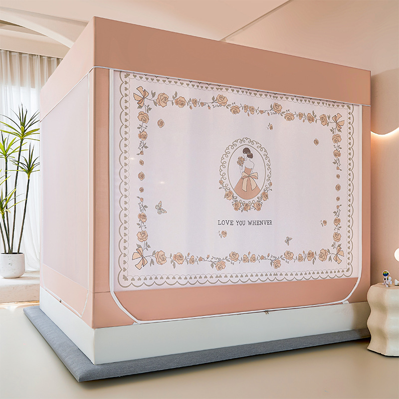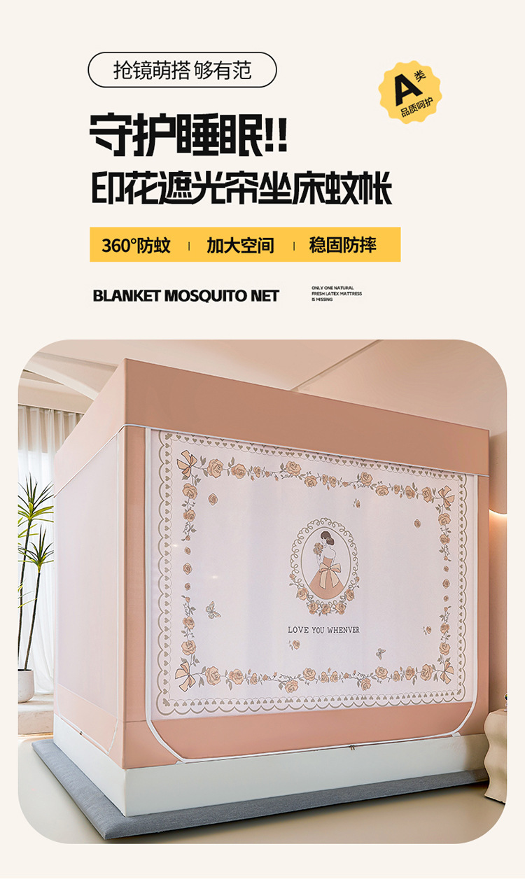새로운 앉아있는 침대 음영 모기장 몽골 3 도어 가정용 침대 커튼 완전히 닫힌 앞 유리 자체 연결 브래킷 다시 아래로