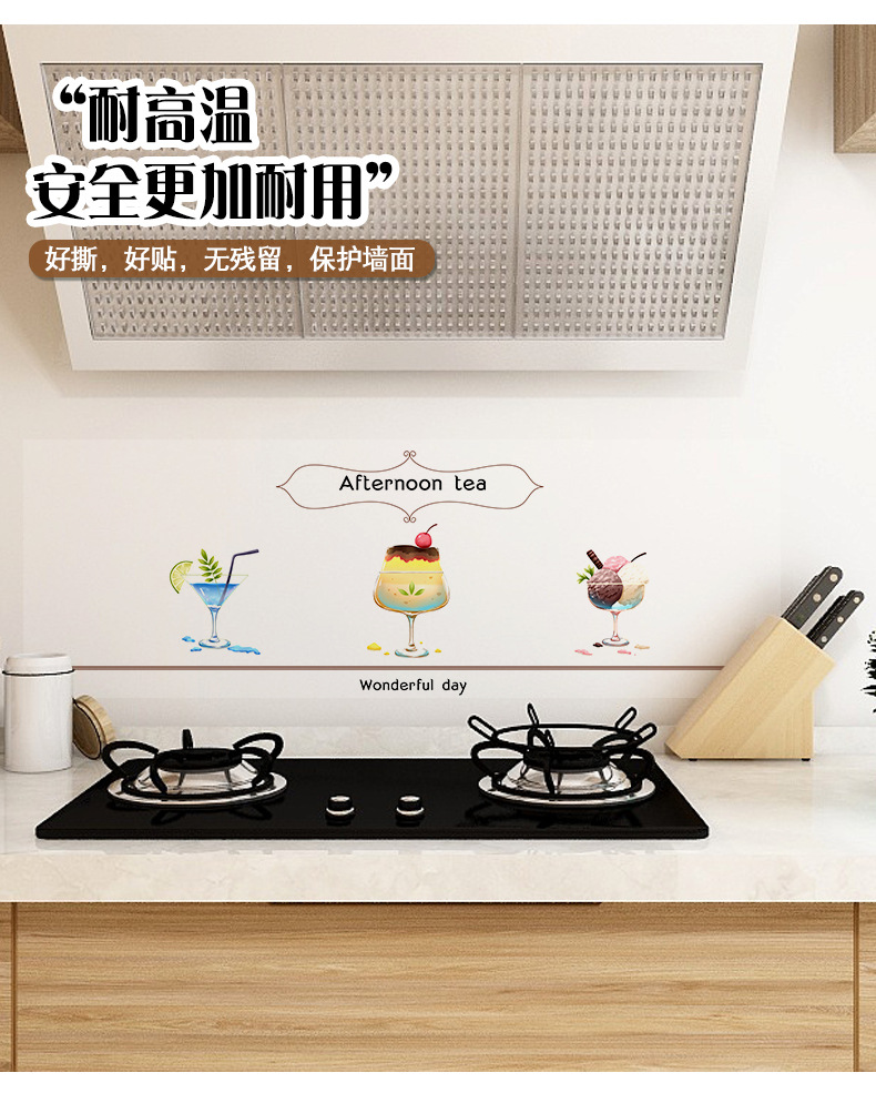주방 내화 스티커 내화 고온 방수 벽지 자체 접착 스토브 후드 벽 필름 도매 세대