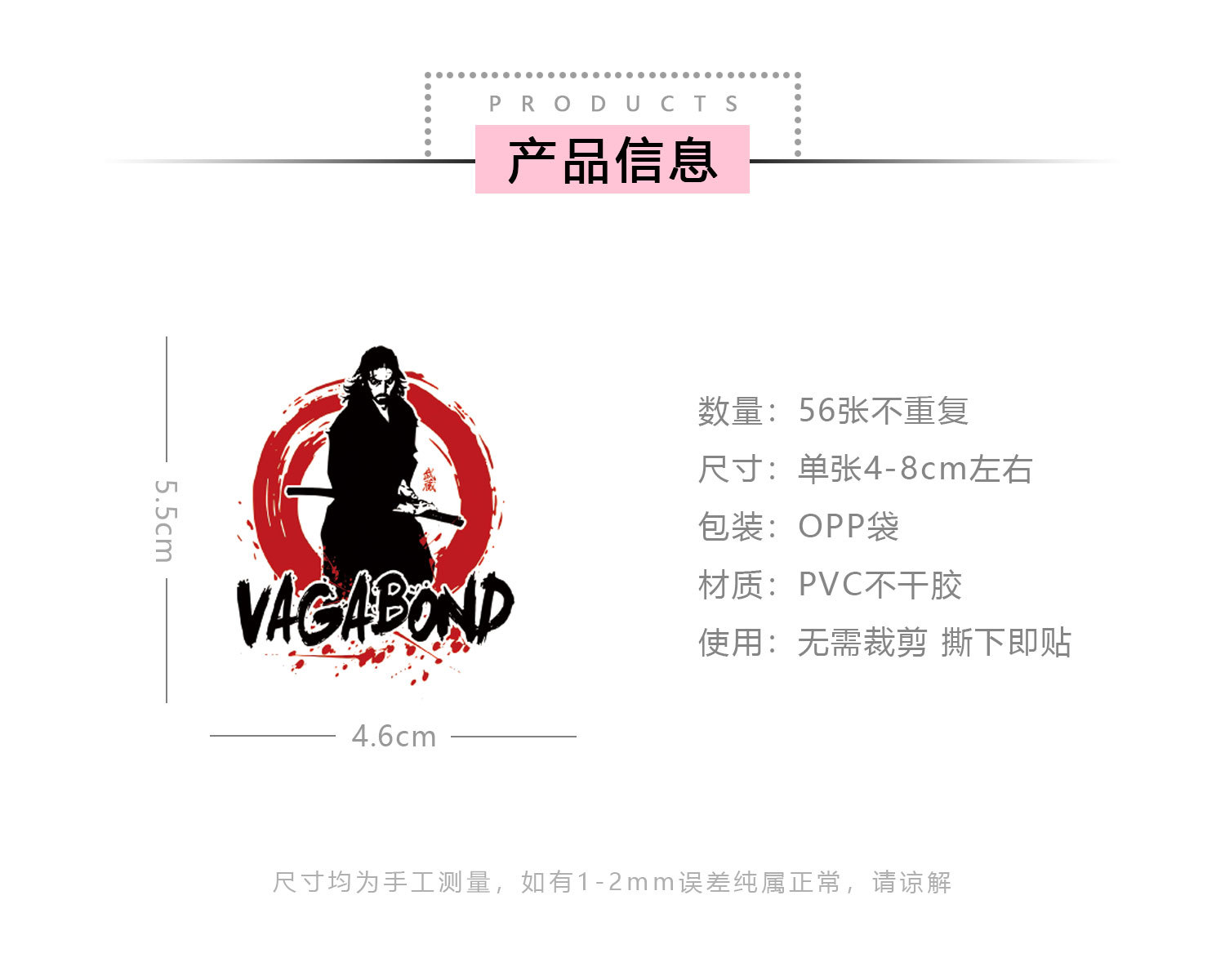 55 ~ 110 새로운 Vagabond 만화 낙서 스티커 자동차 수하물 컵 스티커 DIY 도매