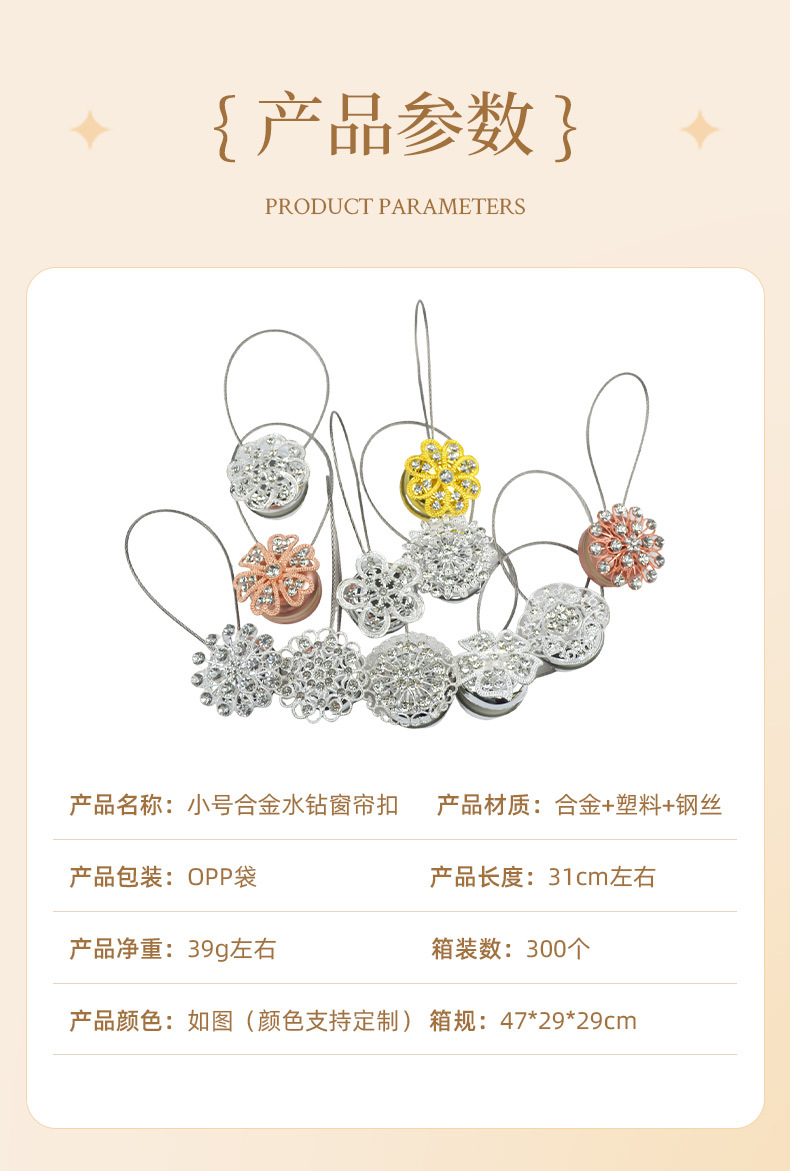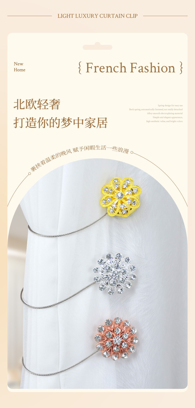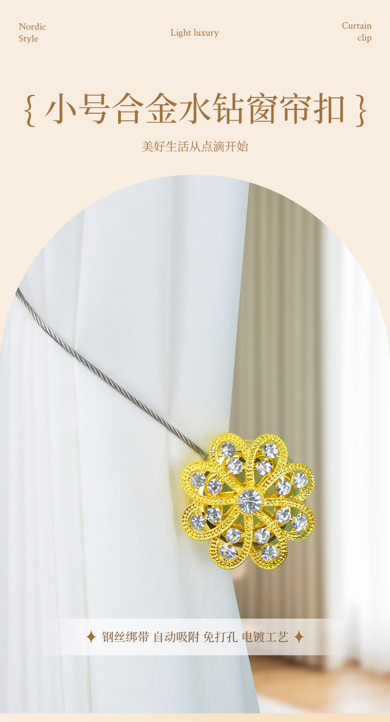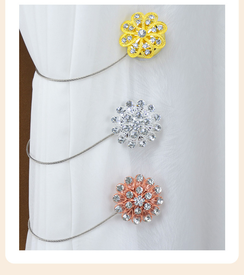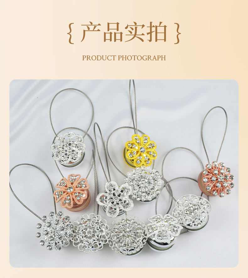 스몰 사이즈 합금 마그네틱 커튼 버클 간단한 현대 스틸 와이어 커튼 스트랩 펀치 프리 홈 커튼로드 장식
