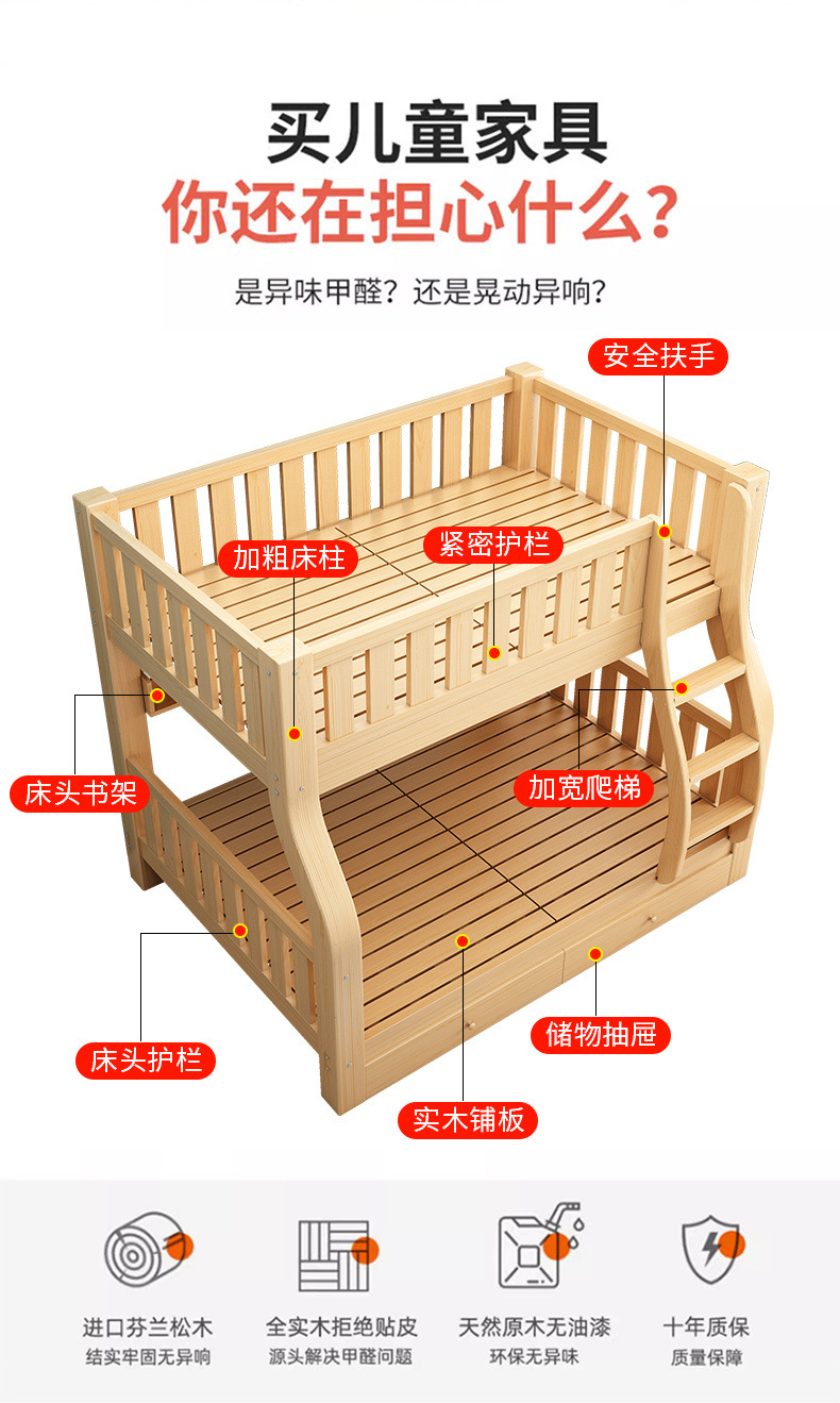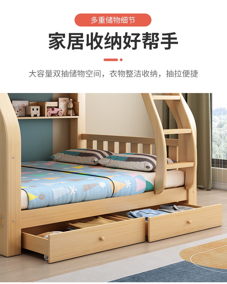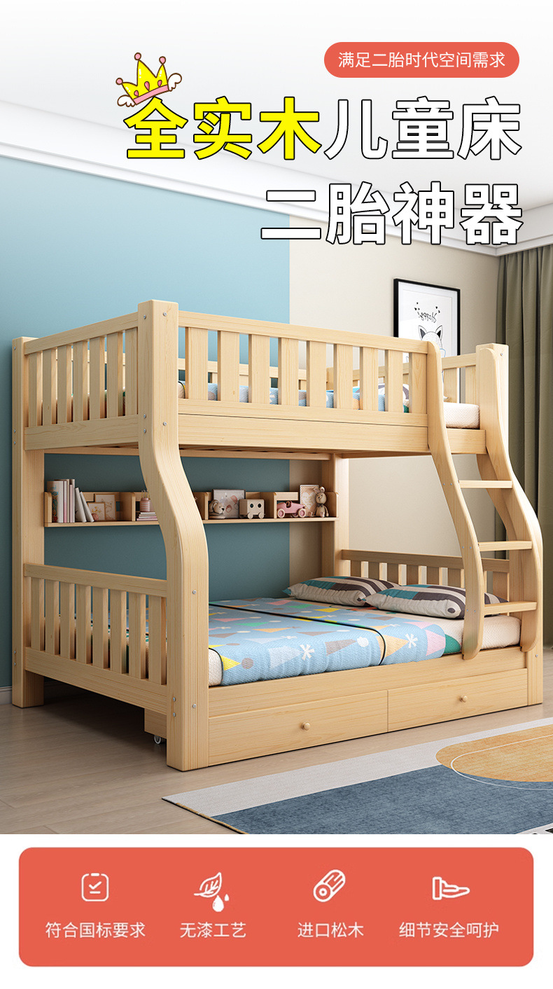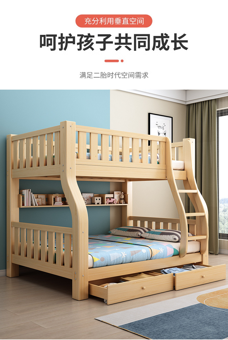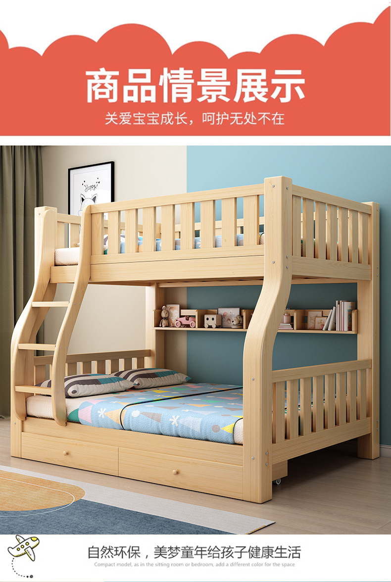 풀 솔리드 우드 침대 이층 2 층 높고 낮은 침대 더블 침대 침대 침대 침대 침대 나무 침대 어린이 어머니-어린이 침대 조합 침대스토어 가기