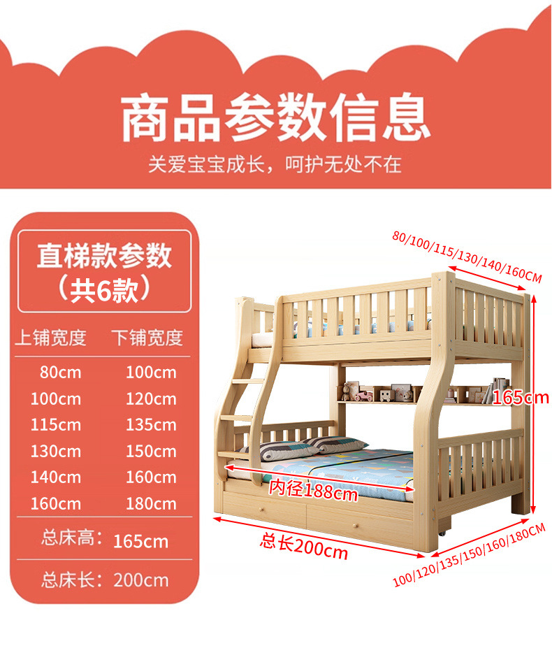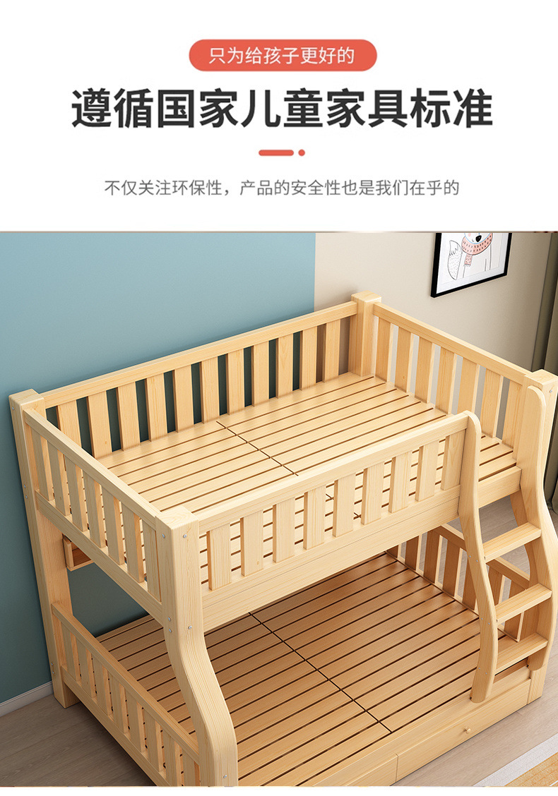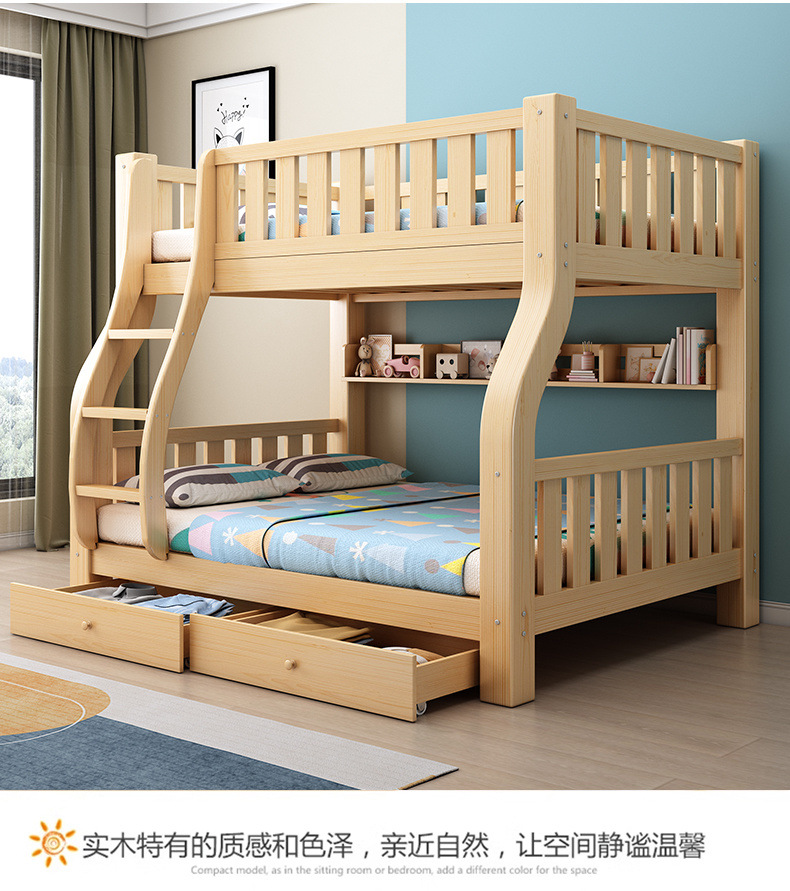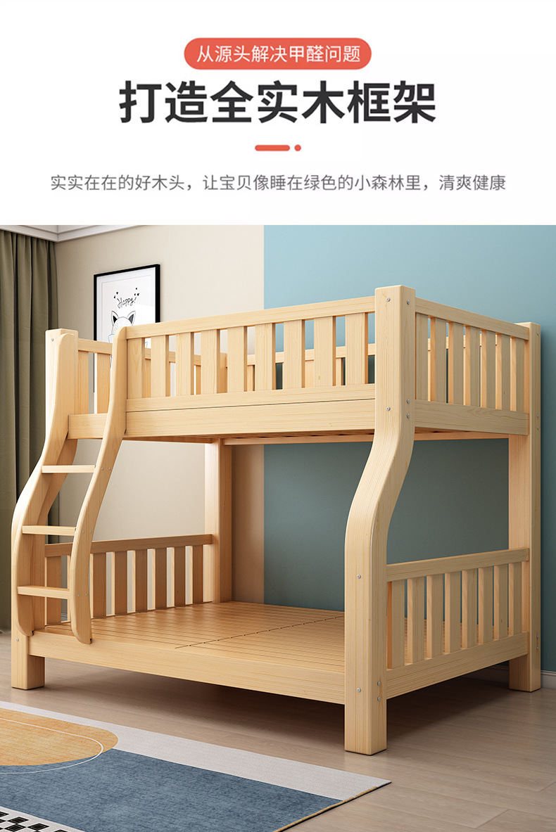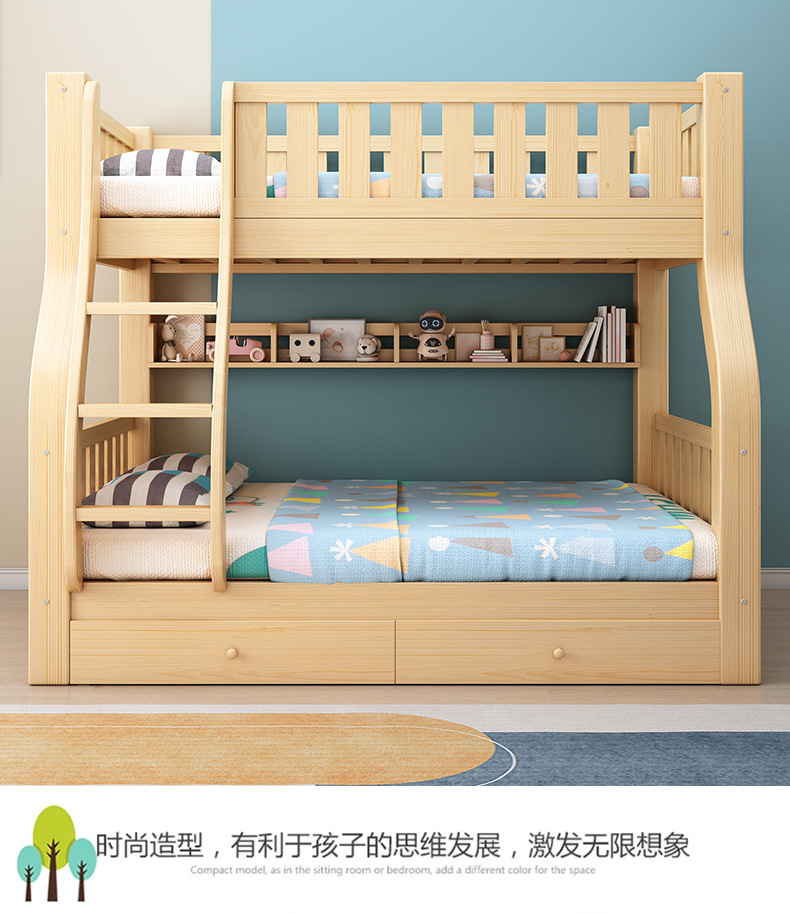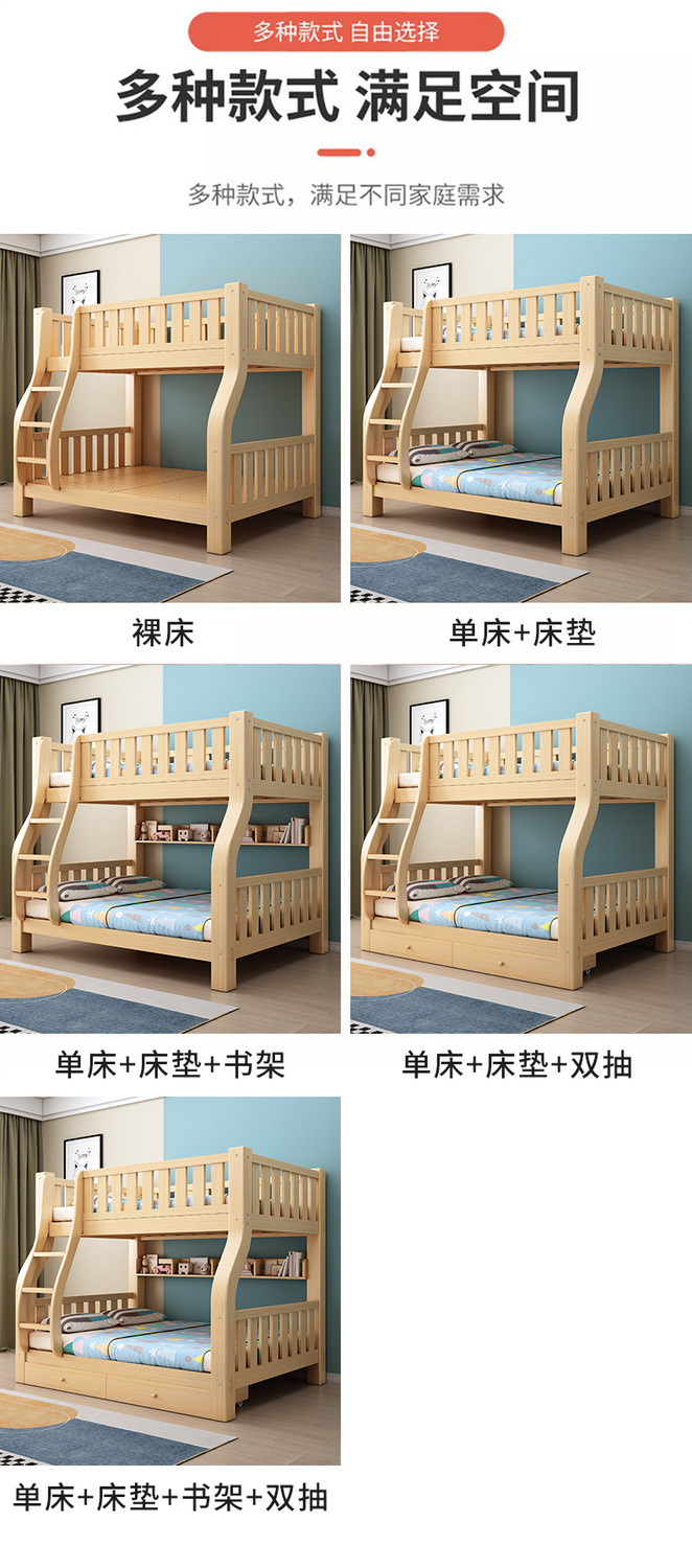 풀 솔리드 우드 침대 이층 2 층 높고 낮은 침대 더블 침대 침대 침대 침대 침대 나무 침대 어린이 어머니-어린이 침대 조합 침대