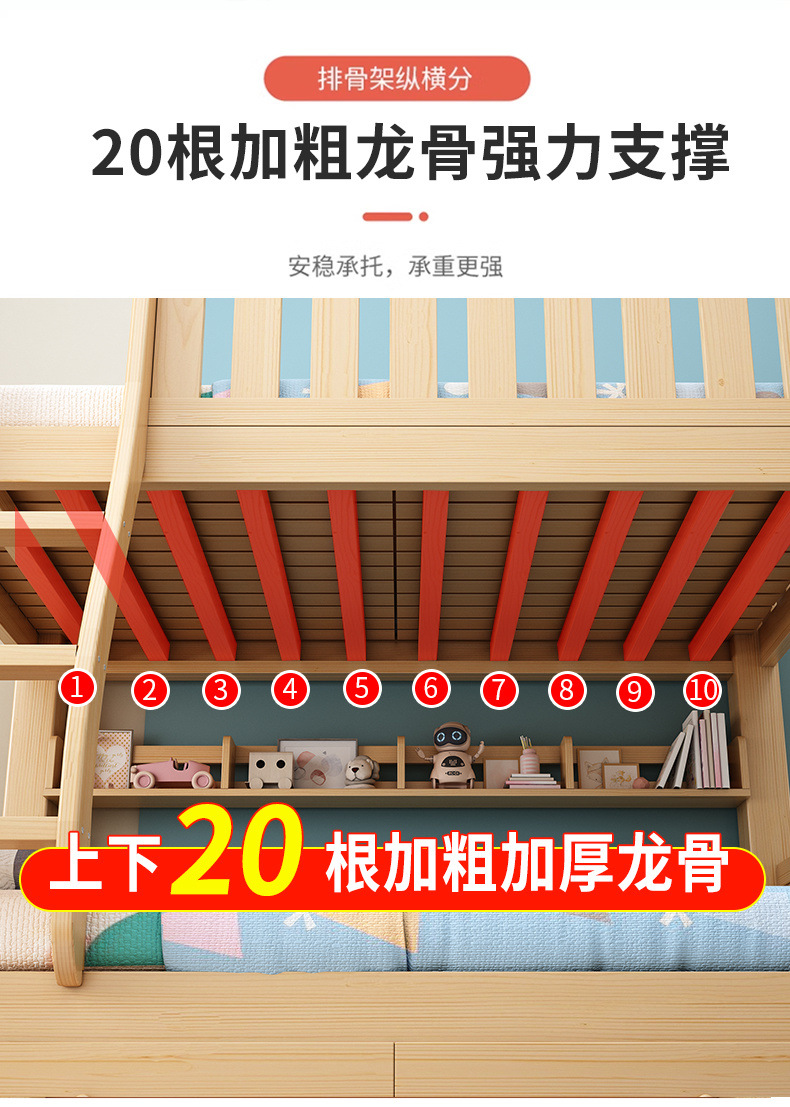 • [업그레이드된 국가 표준] 직선 사다리 + 책장 + 이중 서랍 + 매트리스