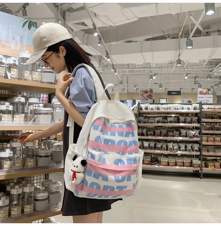 한국식 ins 일본식 고 가치 캠퍼스 중학생 및 고등학생을위한 대용량 알파벳 인쇄 컴퓨터 여행 배낭스토어 가기