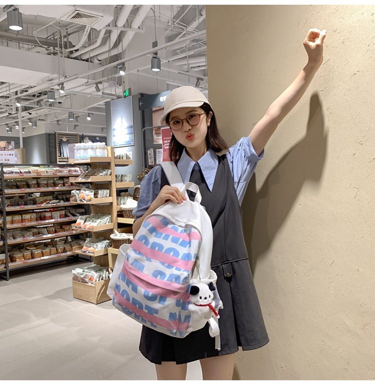 한국식 ins 일본식 고 가치 캠퍼스 중학생 및 고등학생을위한 대용량 알파벳 인쇄 컴퓨터 여행 배낭