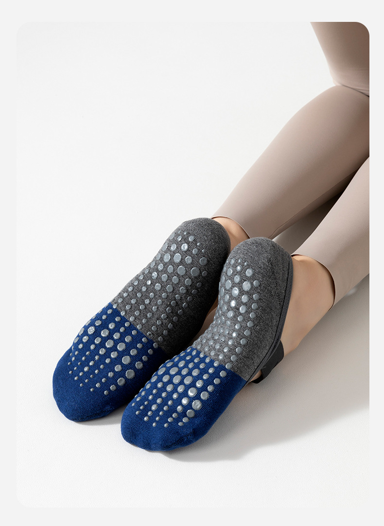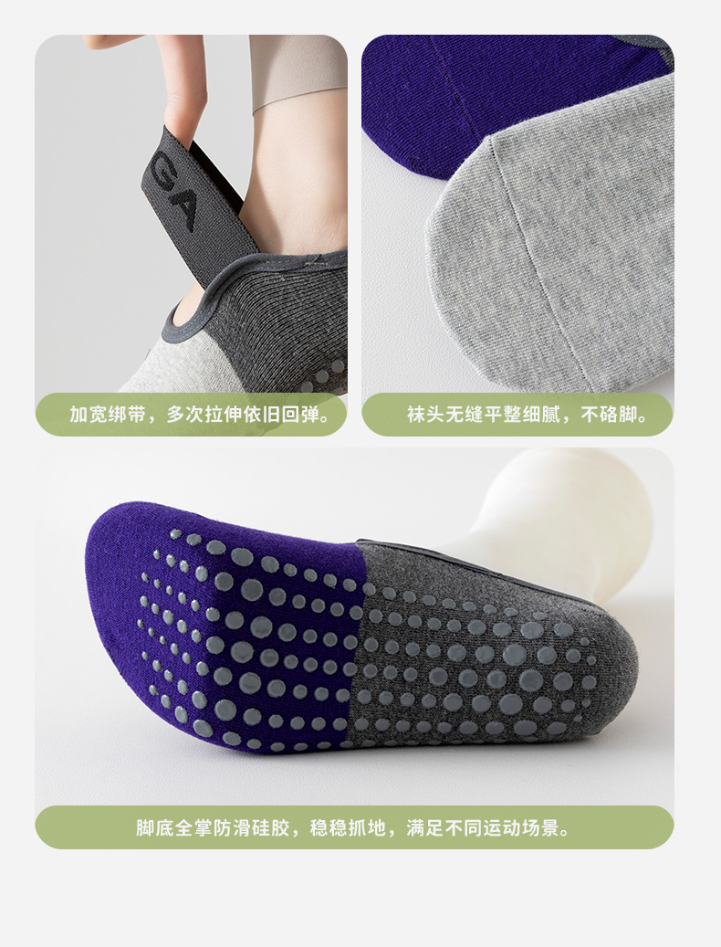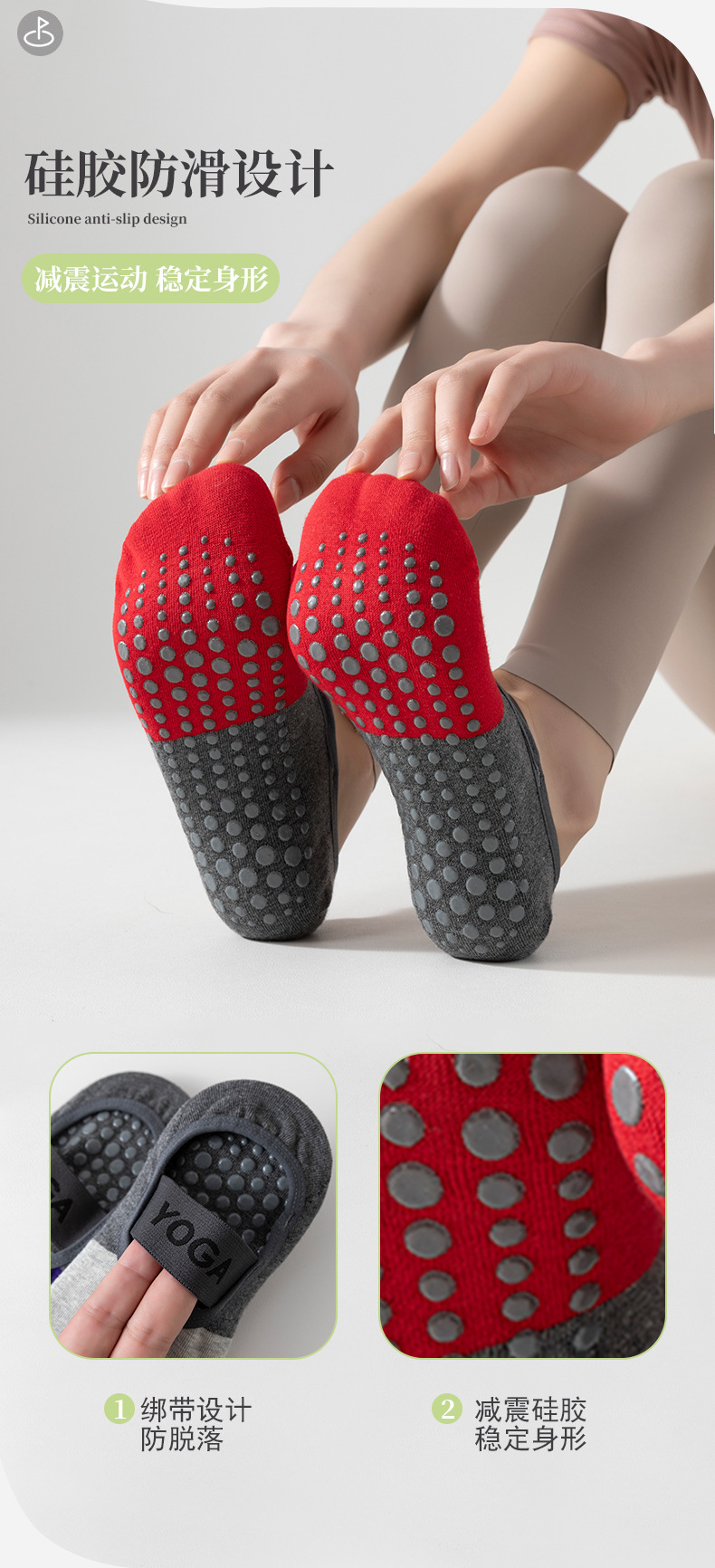 아마존 국경 전문 요가 양말 컬러 블록 면 스트랩 실리콘 미끄럼 방지 필라테스 피트니스 댄스 플로어 양말