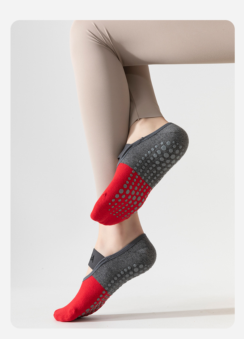 아마존 국경 전문 요가 양말 컬러 블록 면 스트랩 실리콘 미끄럼 방지 필라테스 피트니스 댄스 플로어 양말스토어 가기