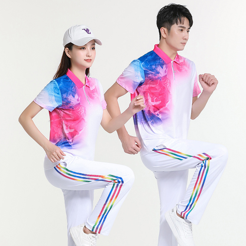 에어로빅 스퀘어 댄스 스포츠웨어 중년 남녀 댄스 공연 대회 의류 야외 걷기 하이킹 팀 유니폼