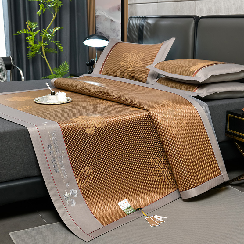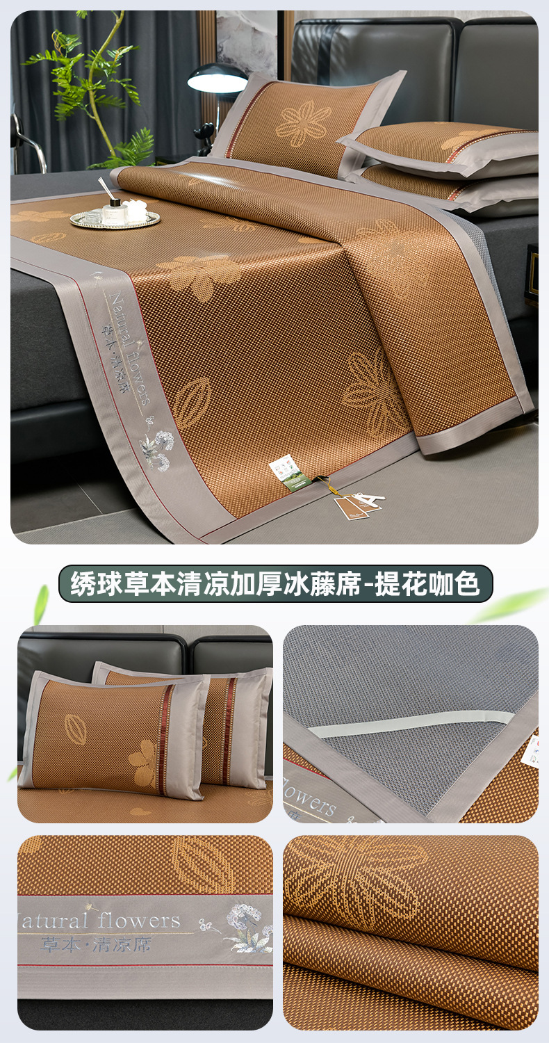 • 두꺼운 수국 허벌 쿨 아이스 등나무 매트 (자카드 다크 브라운)