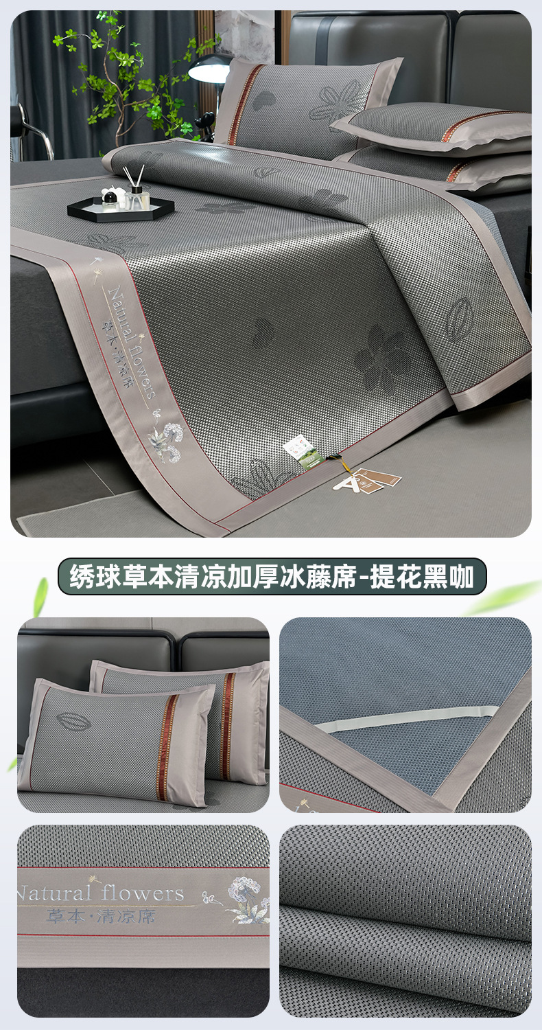 • 두꺼운 수국 허벌 쿨 아이스 등나무 매트 (자카드 블랙 커피)