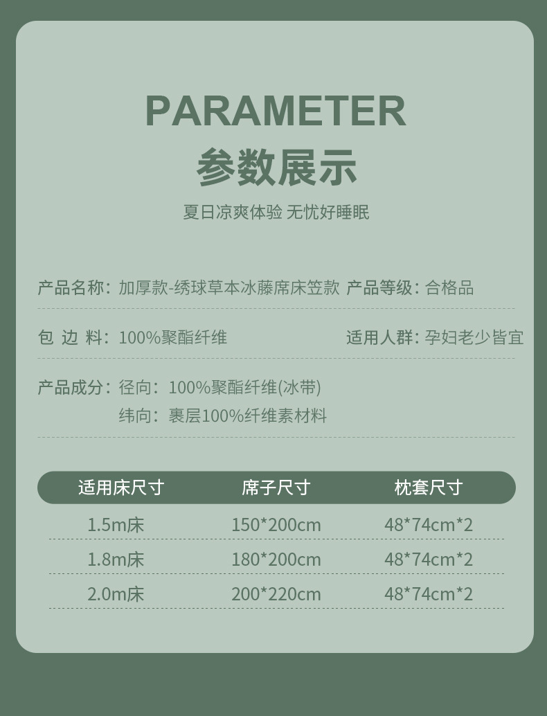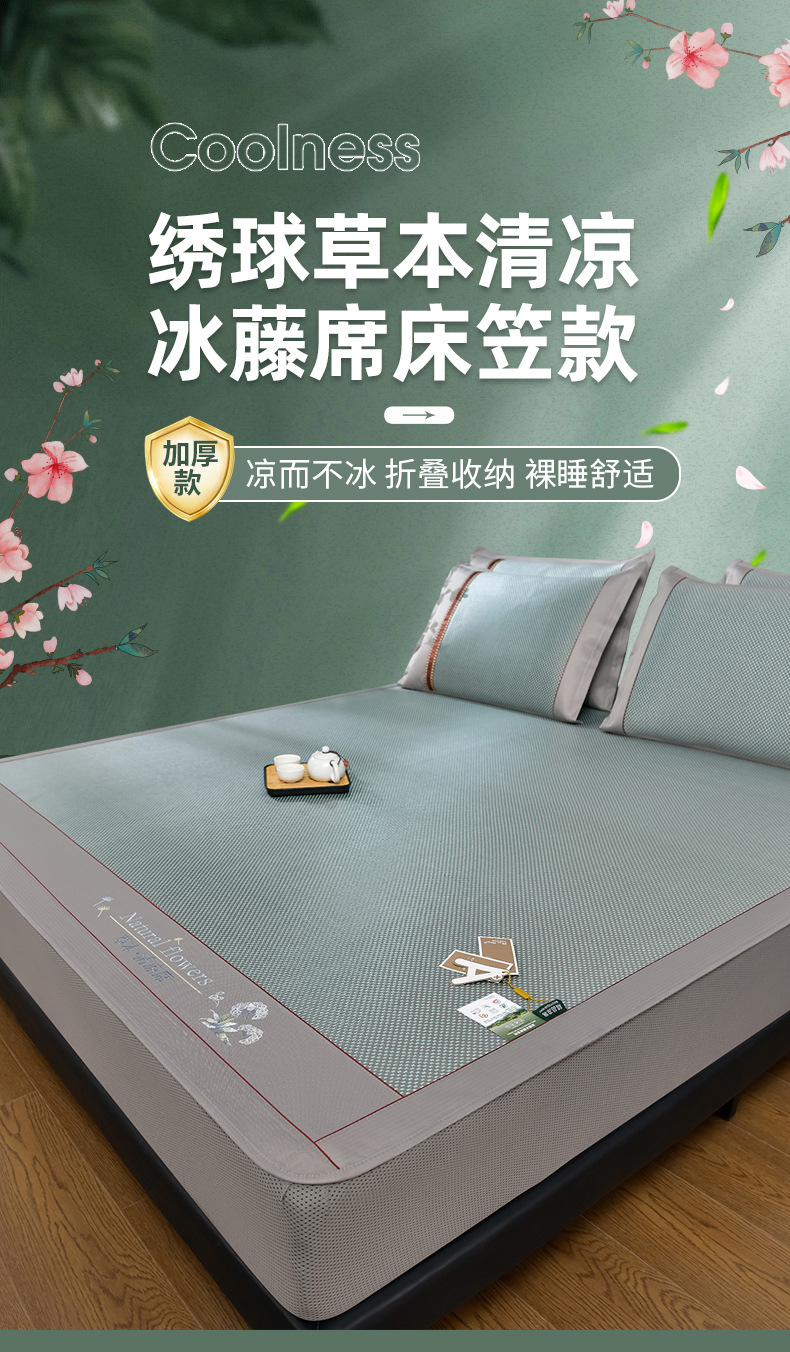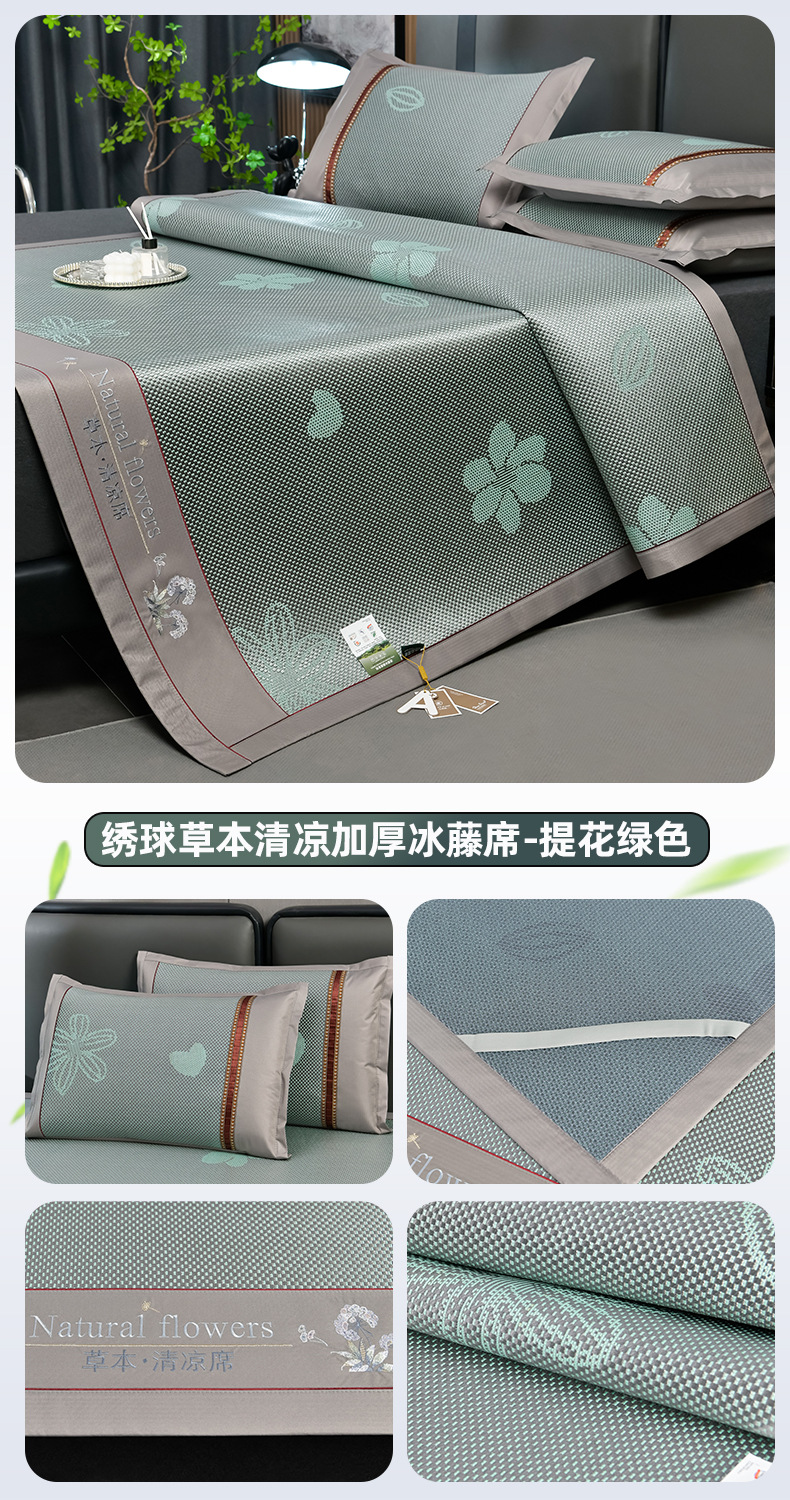 • 두꺼운 수국 허벌 쿨 아이스 등나무 매트 (자카드 그린)