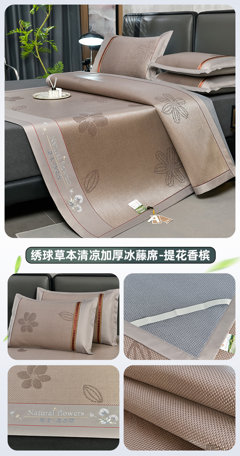 • 두꺼운 수국 허벌 쿨 아이스 등나무 매트 (자카드 샴페인)