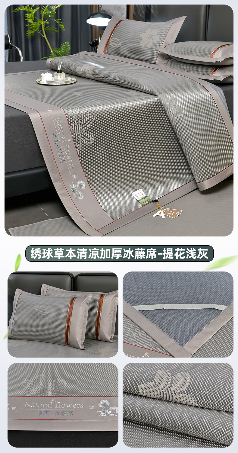 • 두꺼운 수국 허벌 쿨 아이스 등나무 매트 (자카드 라이트 그레이)