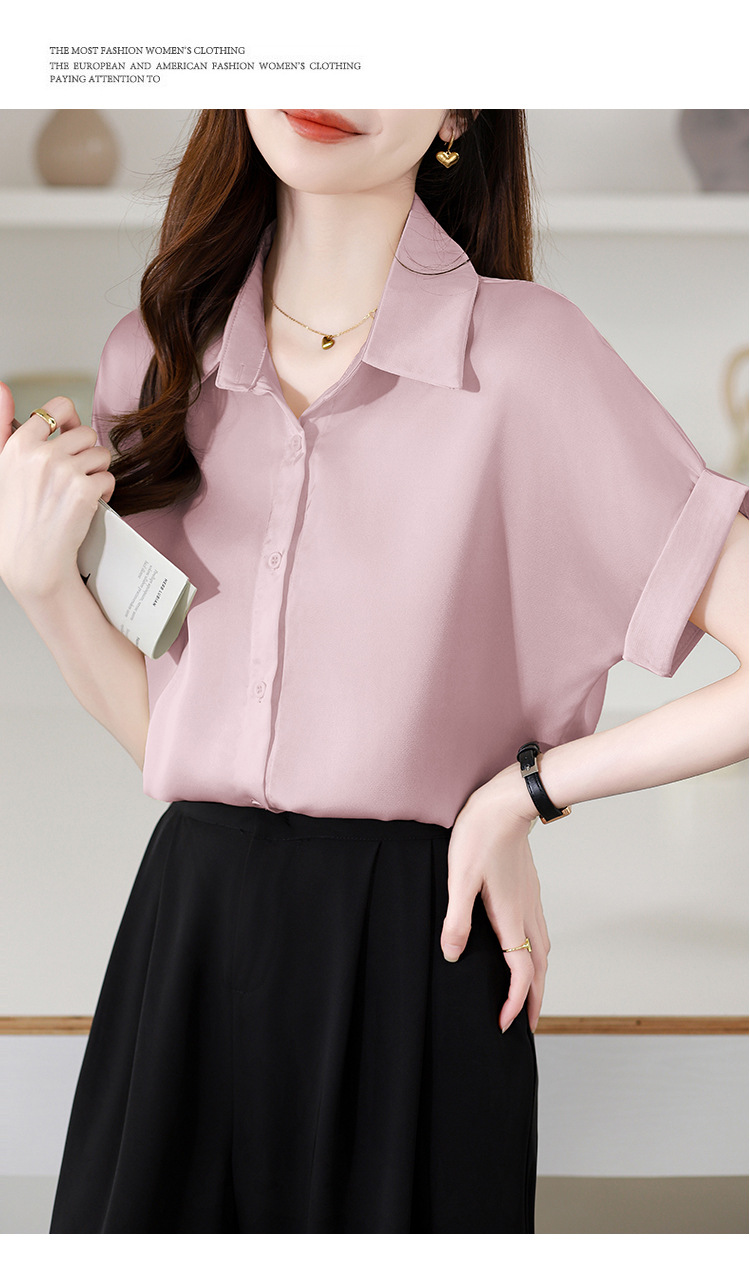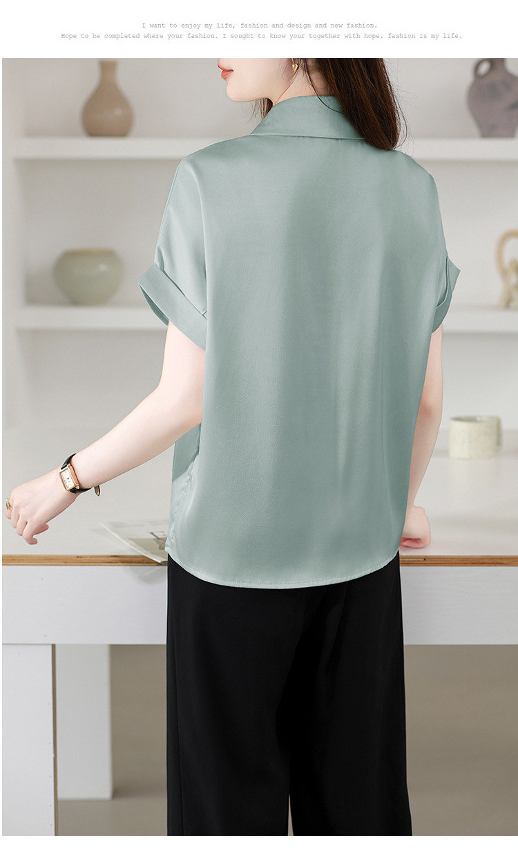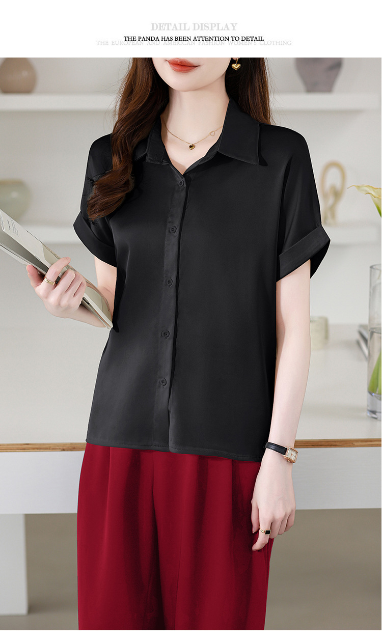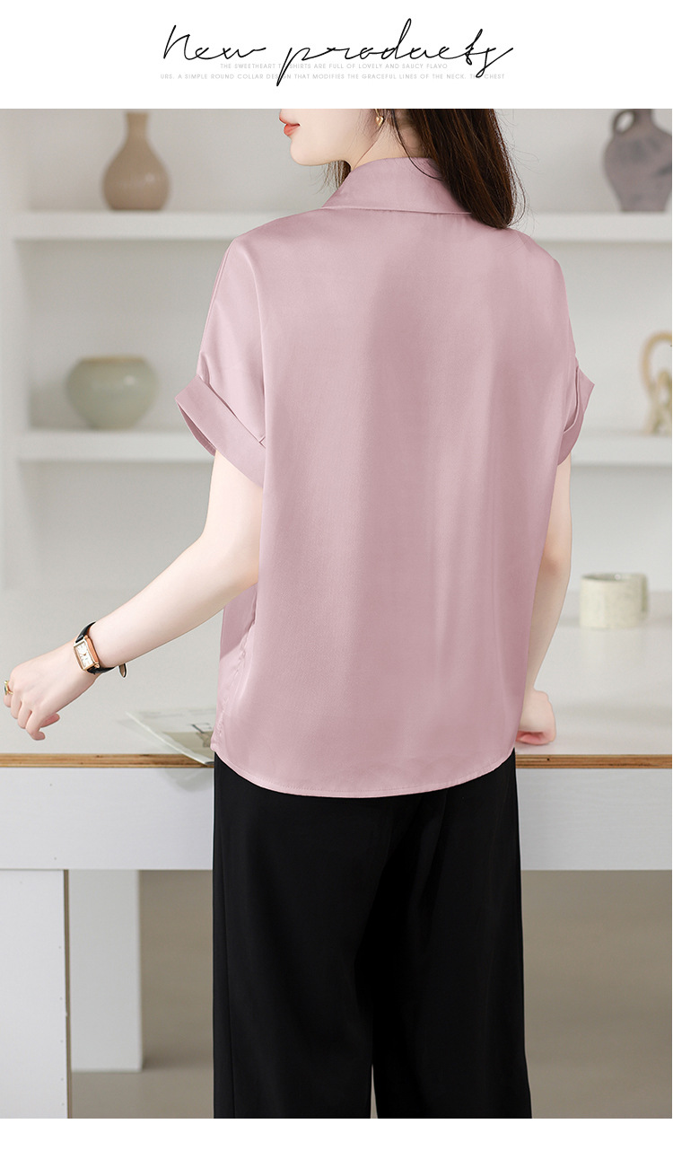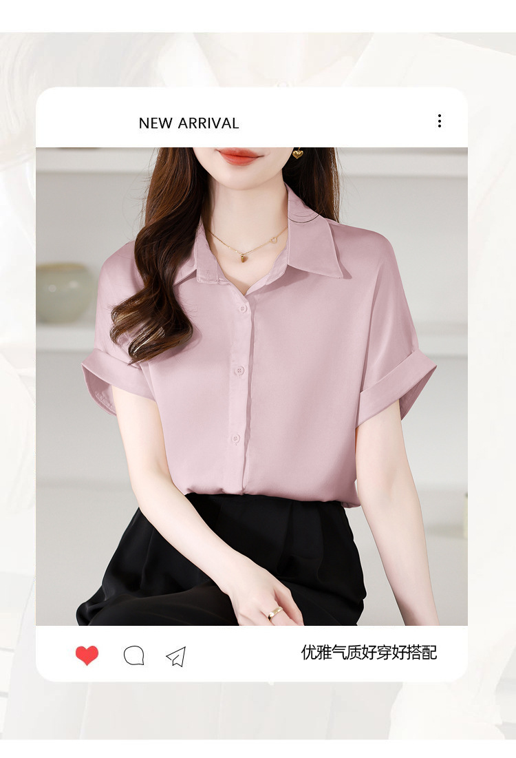 리얼 샷 재고 8 컬러 5 사이즈 여름 한국 새로운 새틴 기질 복고풍 느슨한 통근 짧은 소매 셔츠