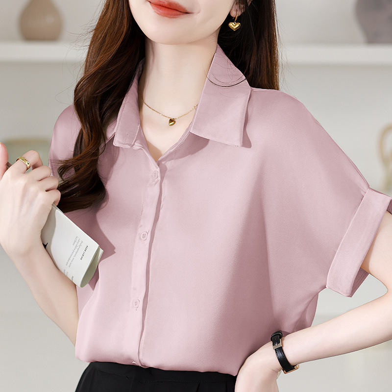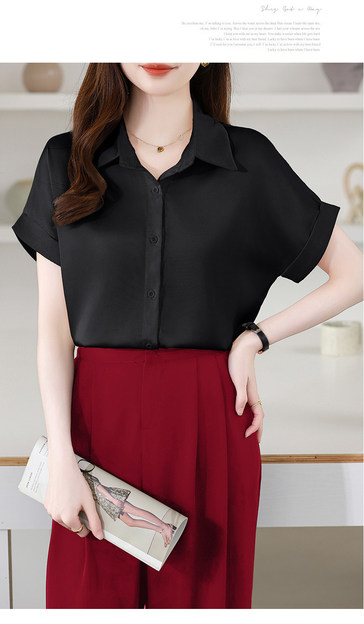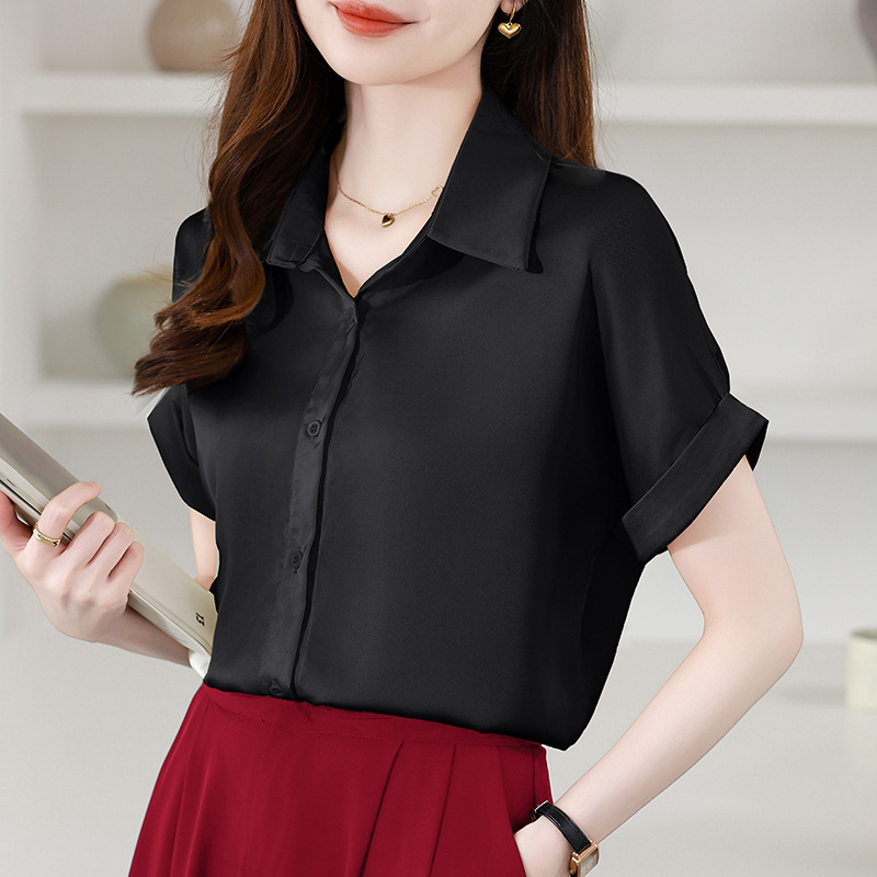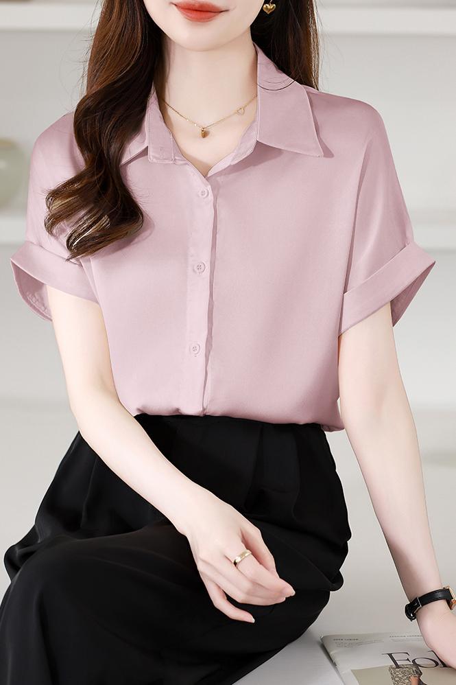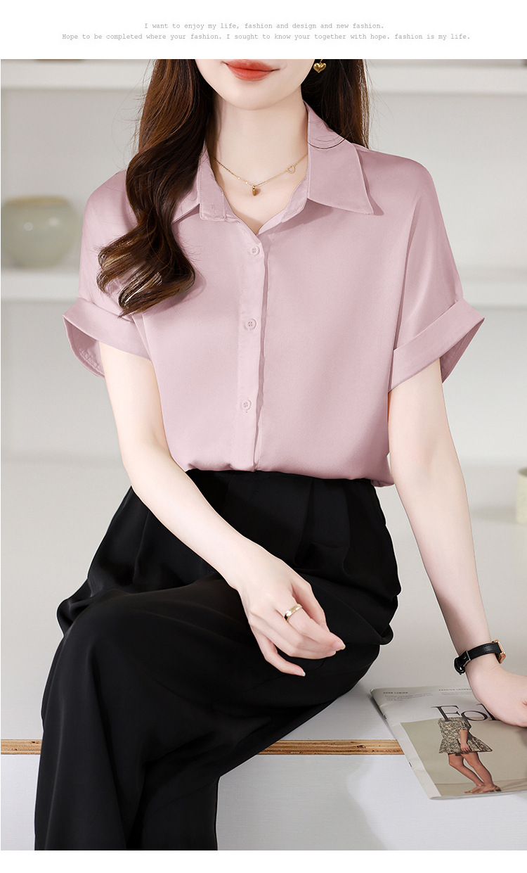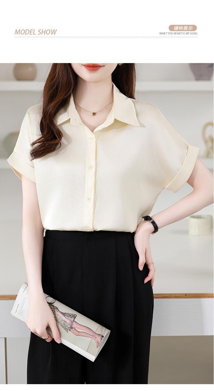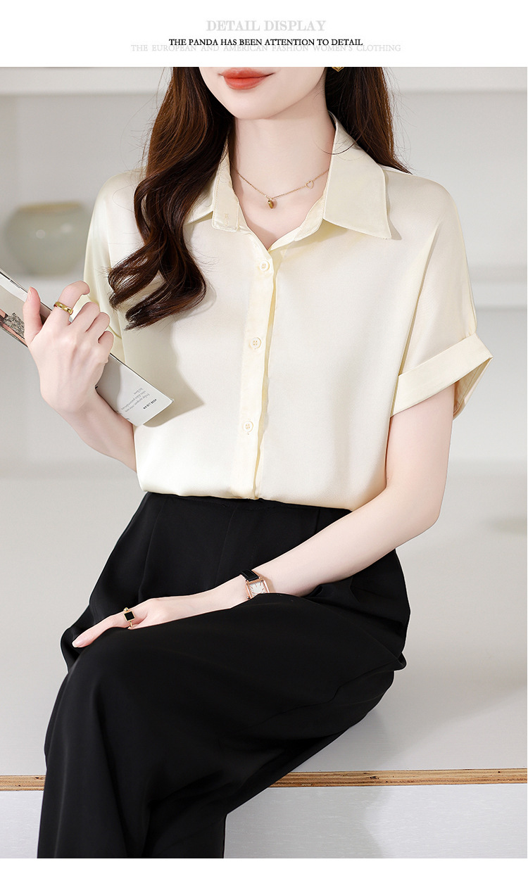 리얼 샷 재고 8 컬러 5 사이즈 여름 한국 새로운 새틴 기질 복고풍 느슨한 통근 짧은 소매 셔츠