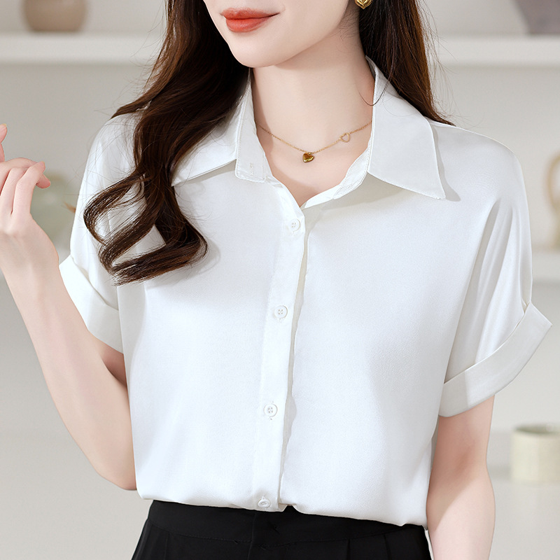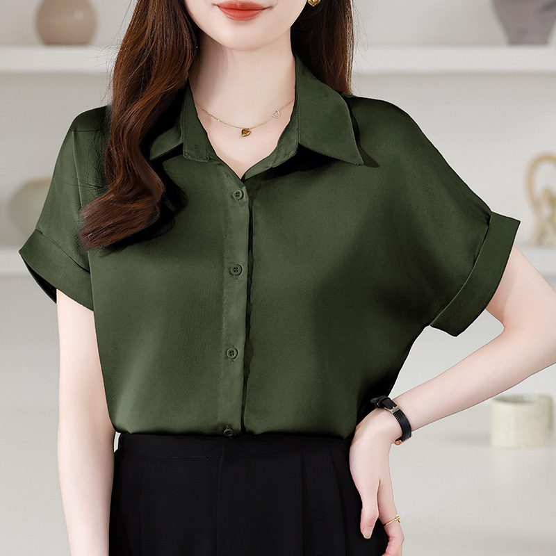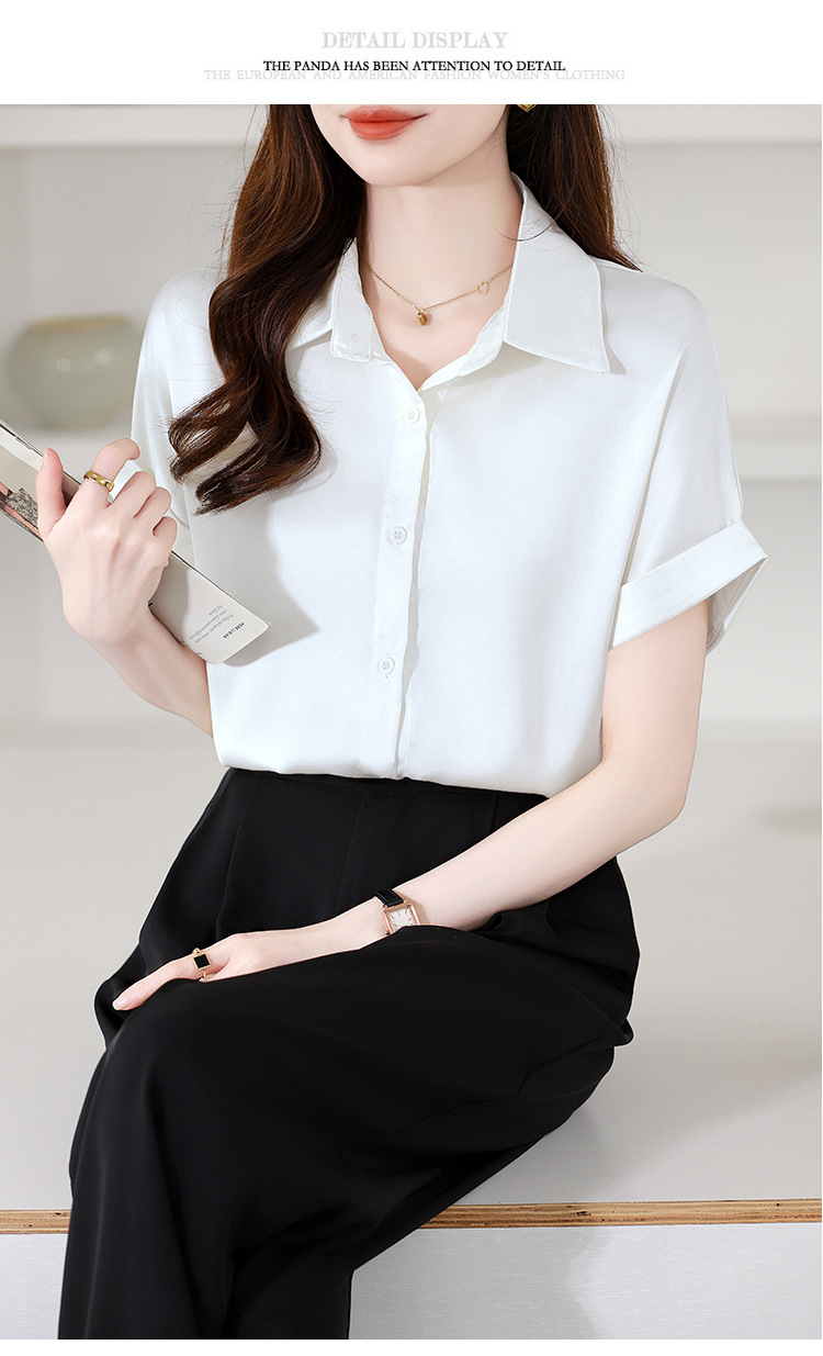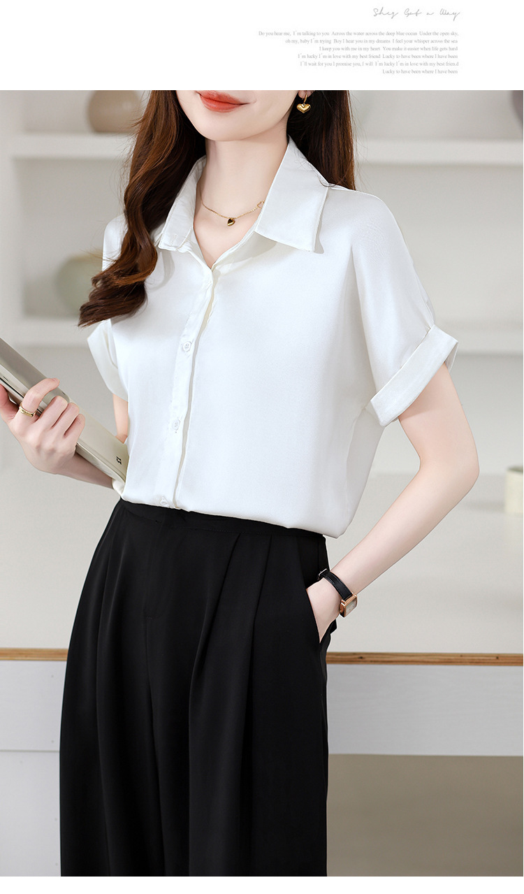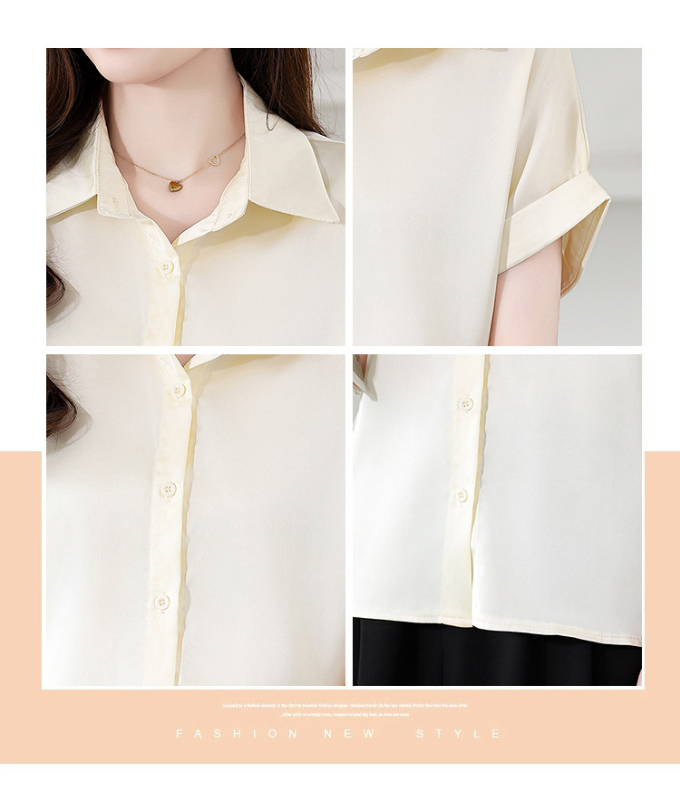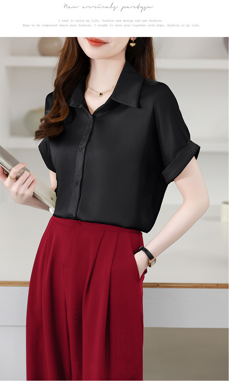 리얼 샷 재고 8 컬러 5 사이즈 여름 한국 새로운 새틴 기질 복고풍 느슨한 통근 짧은 소매 셔츠
