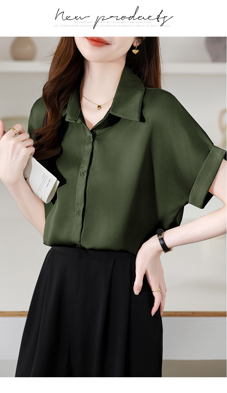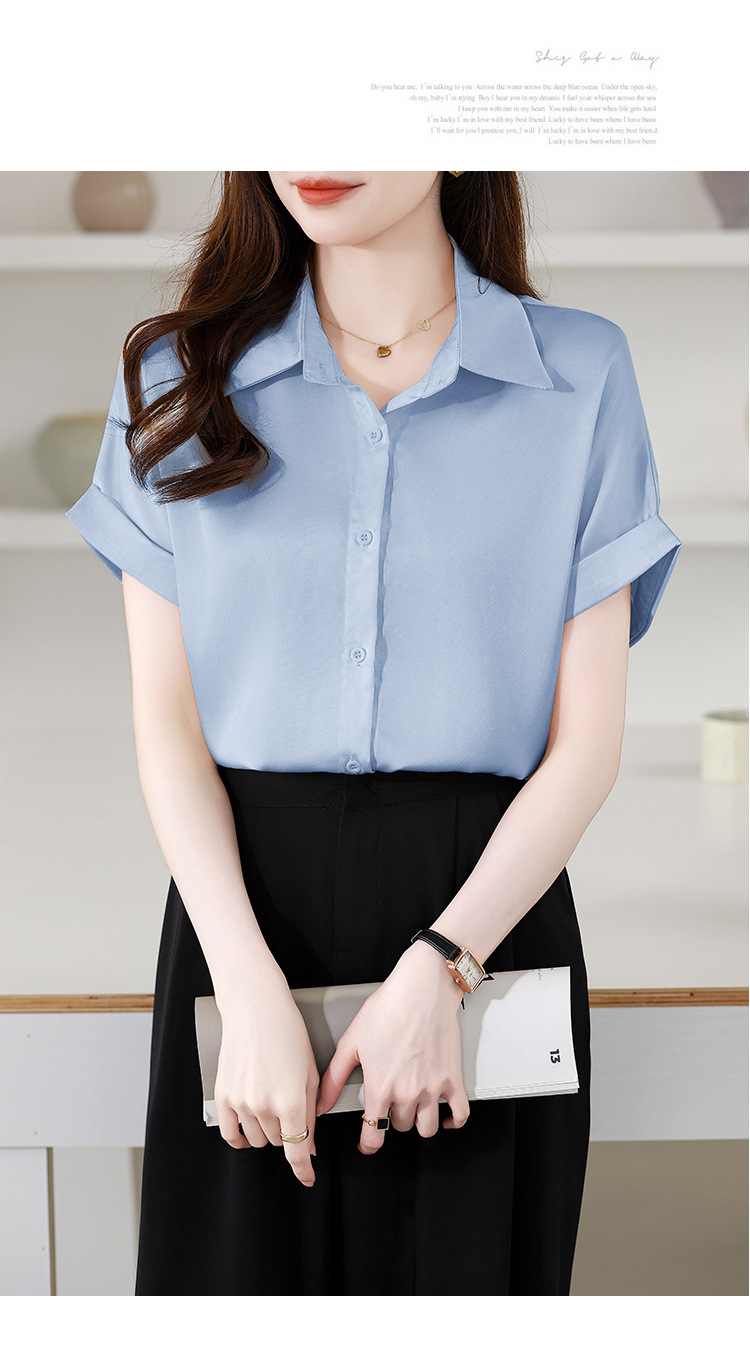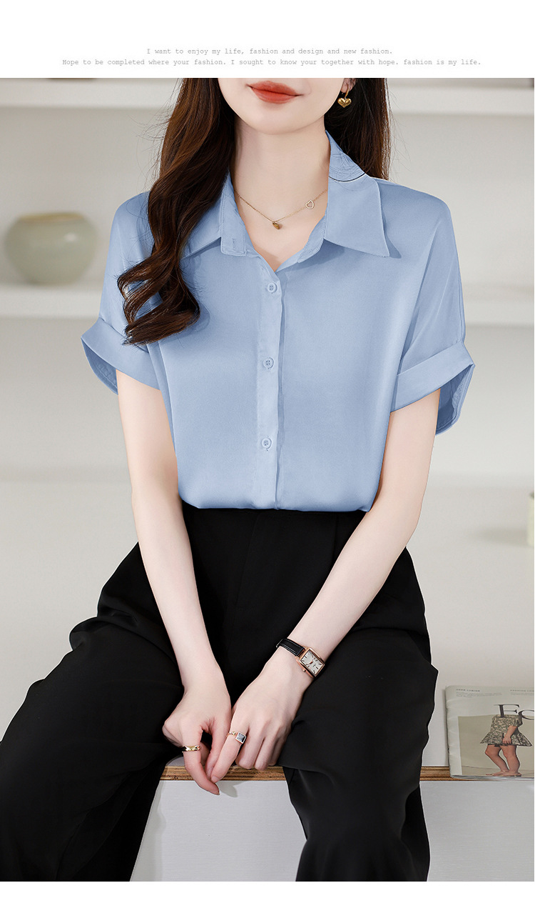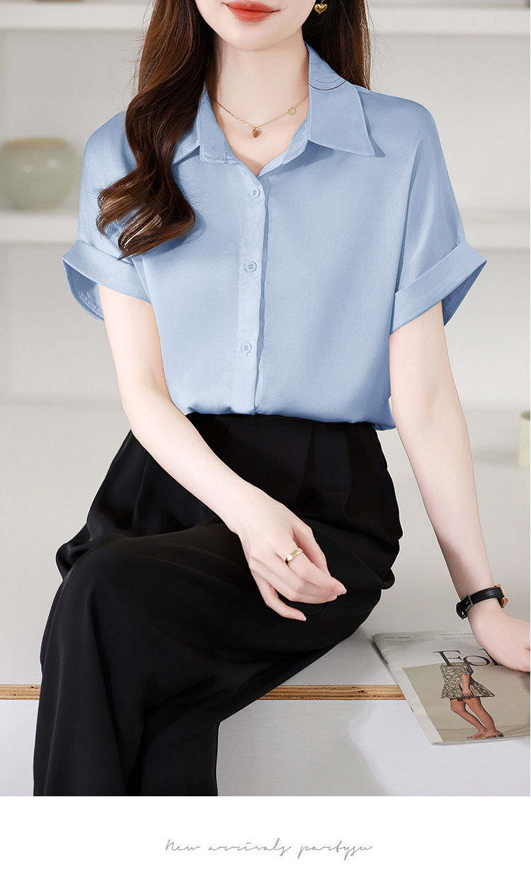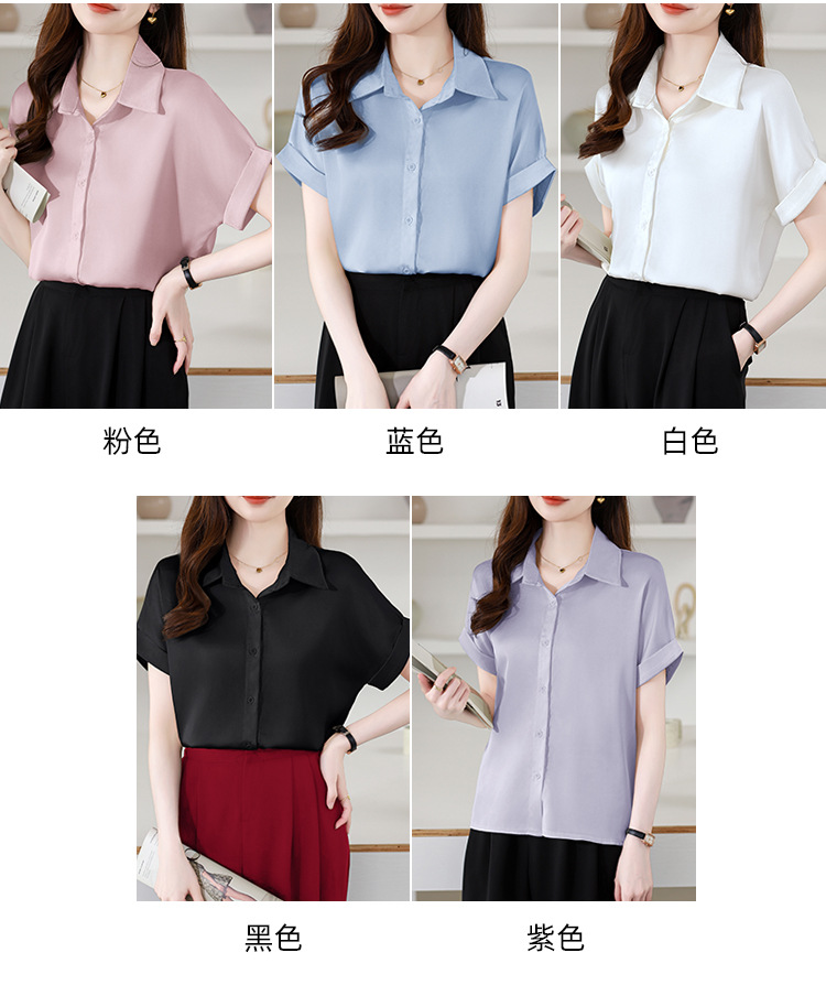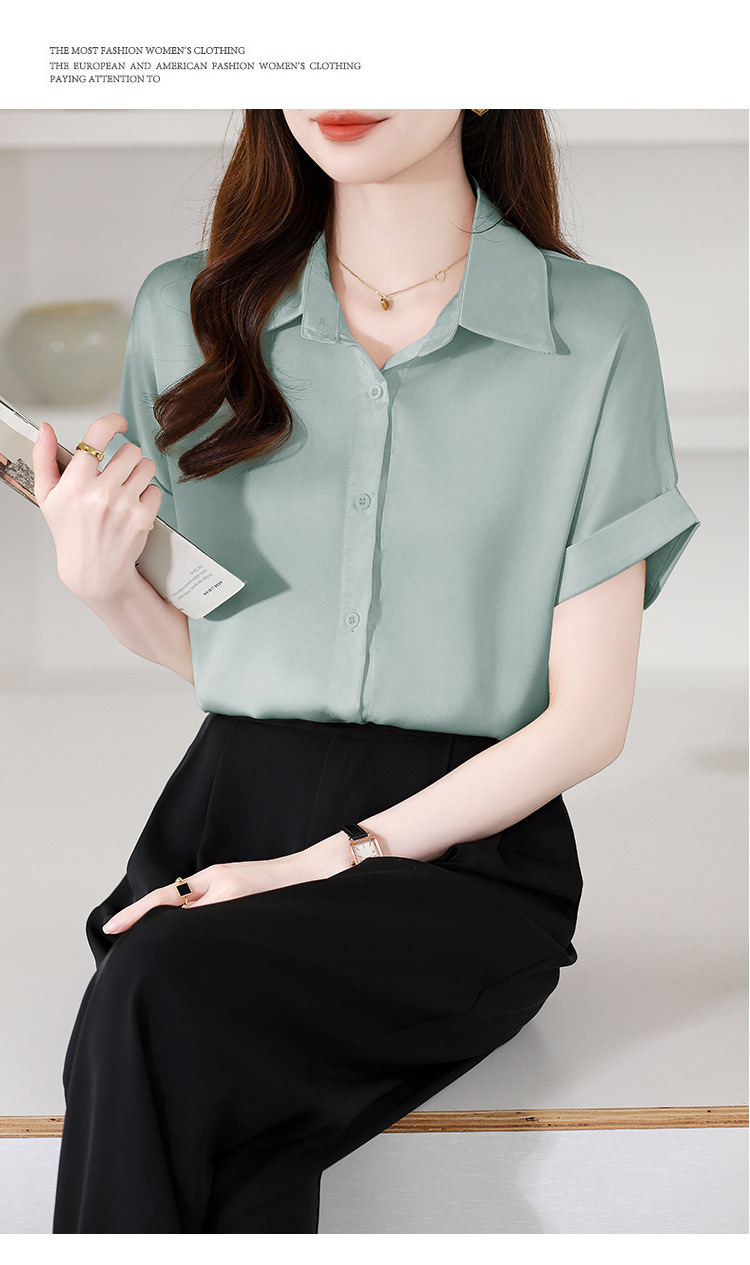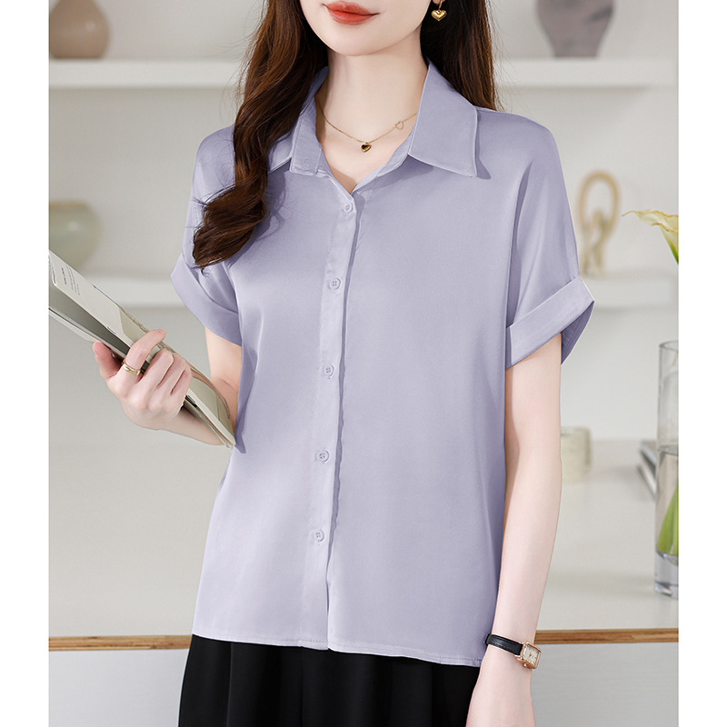 리얼 샷 재고 8 컬러 5 사이즈 여름 한국 새로운 새틴 기질 복고풍 느슨한 통근 짧은 소매 셔츠스토어 가기