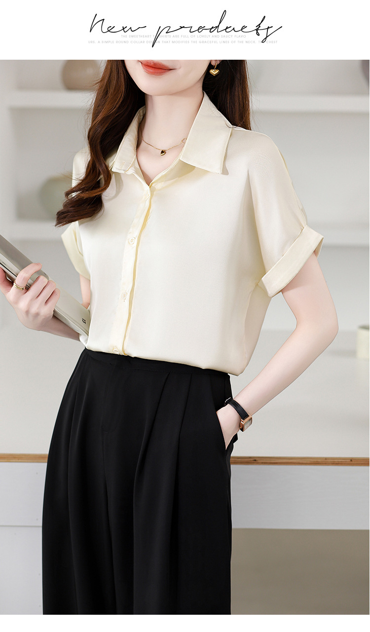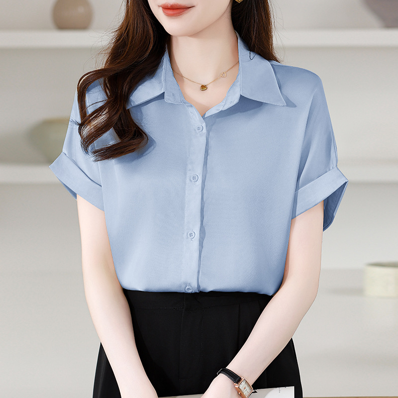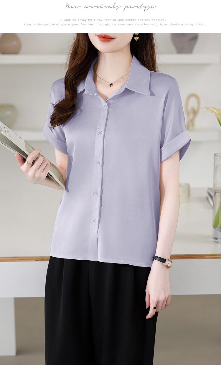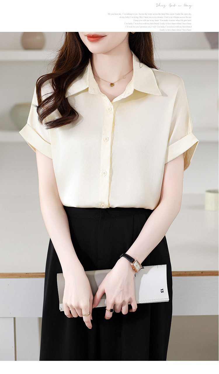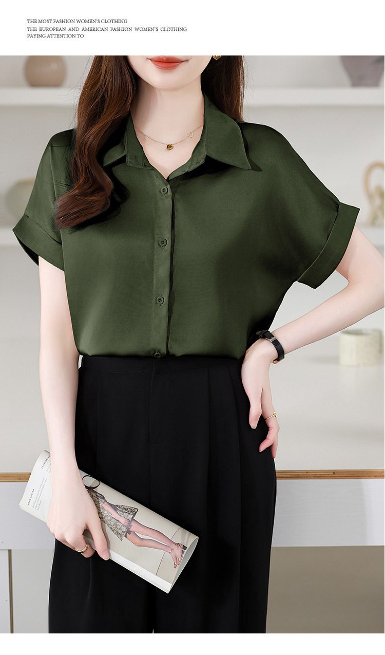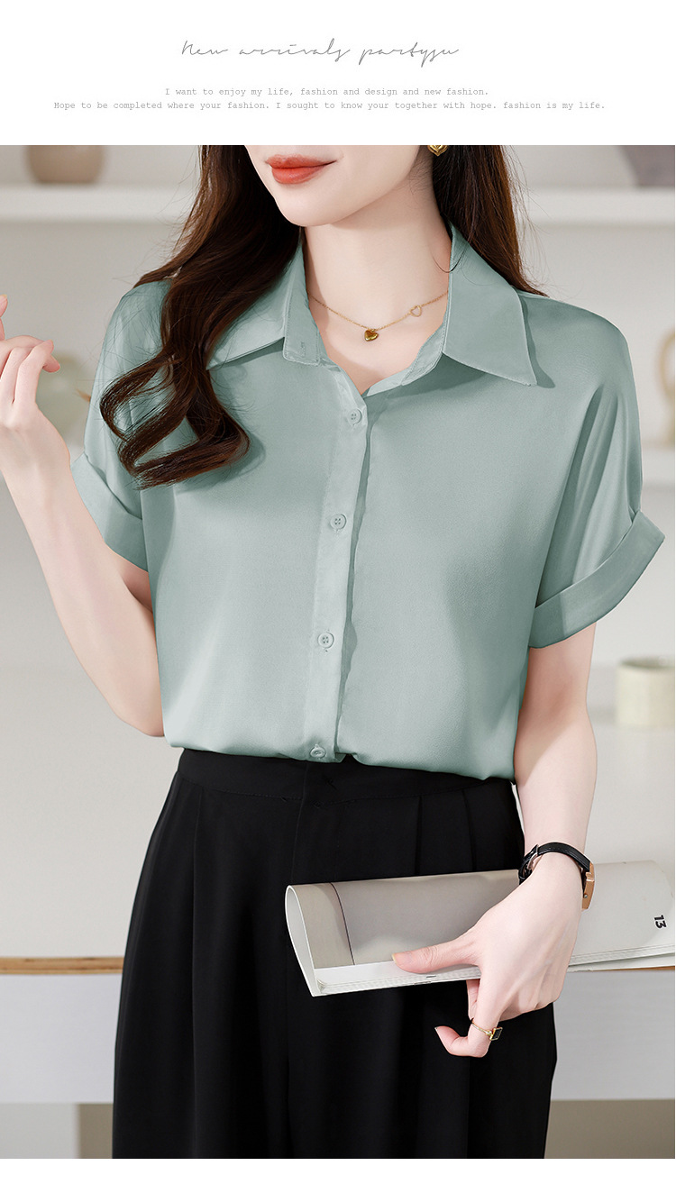 리얼 샷 재고 8 컬러 5 사이즈 여름 한국 새로운 새틴 기질 복고풍 느슨한 통근 짧은 소매 셔츠스토어 가기