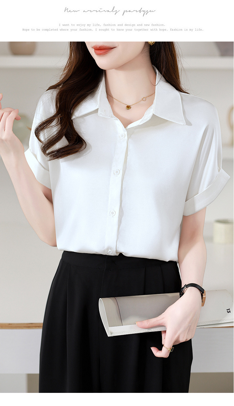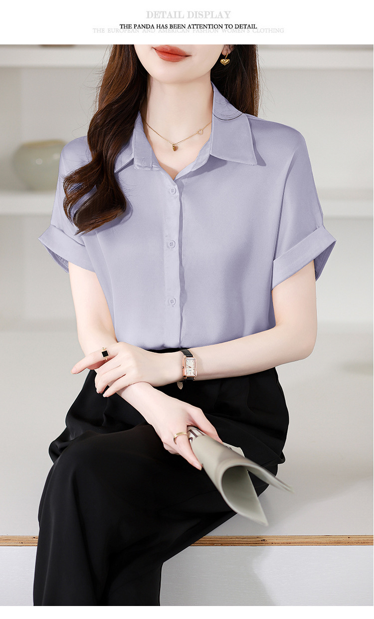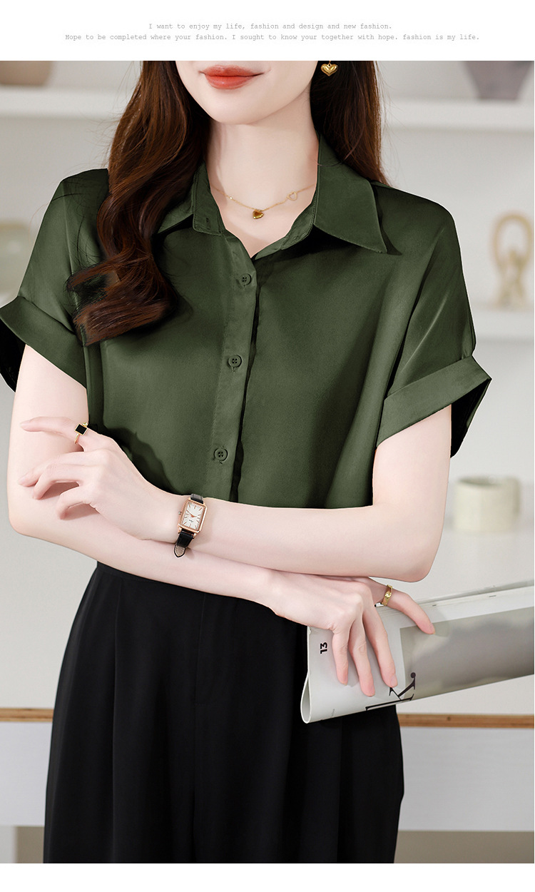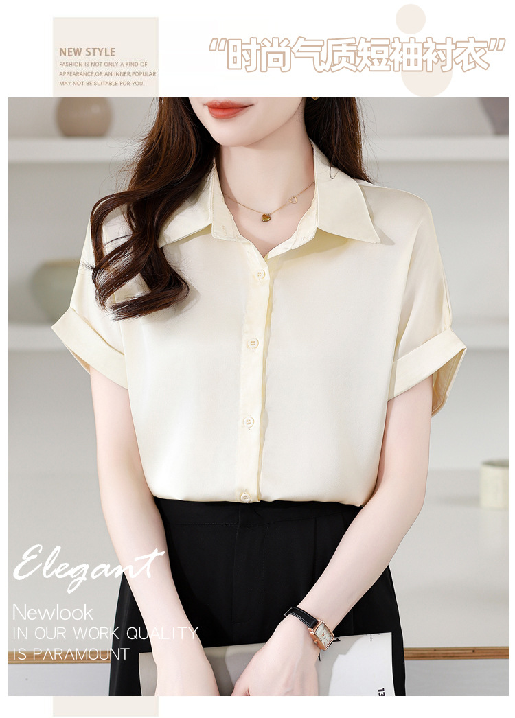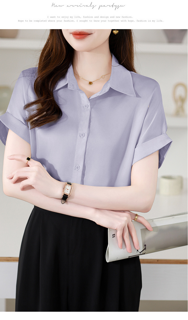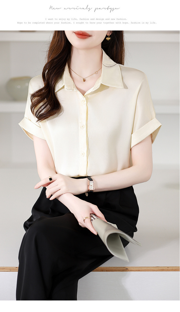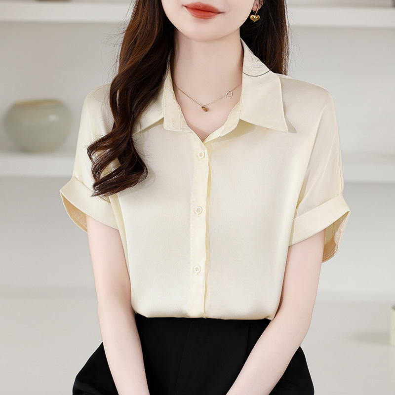 리얼 샷 재고 8 컬러 5 사이즈 여름 한국 새로운 새틴 기질 복고풍 느슨한 통근 짧은 소매 셔츠스토어 가기