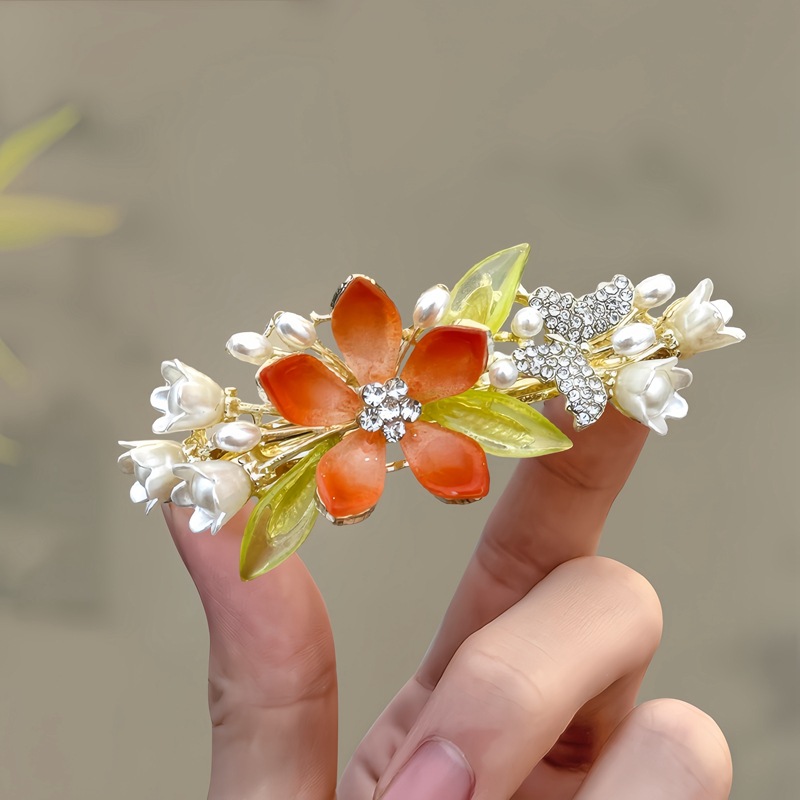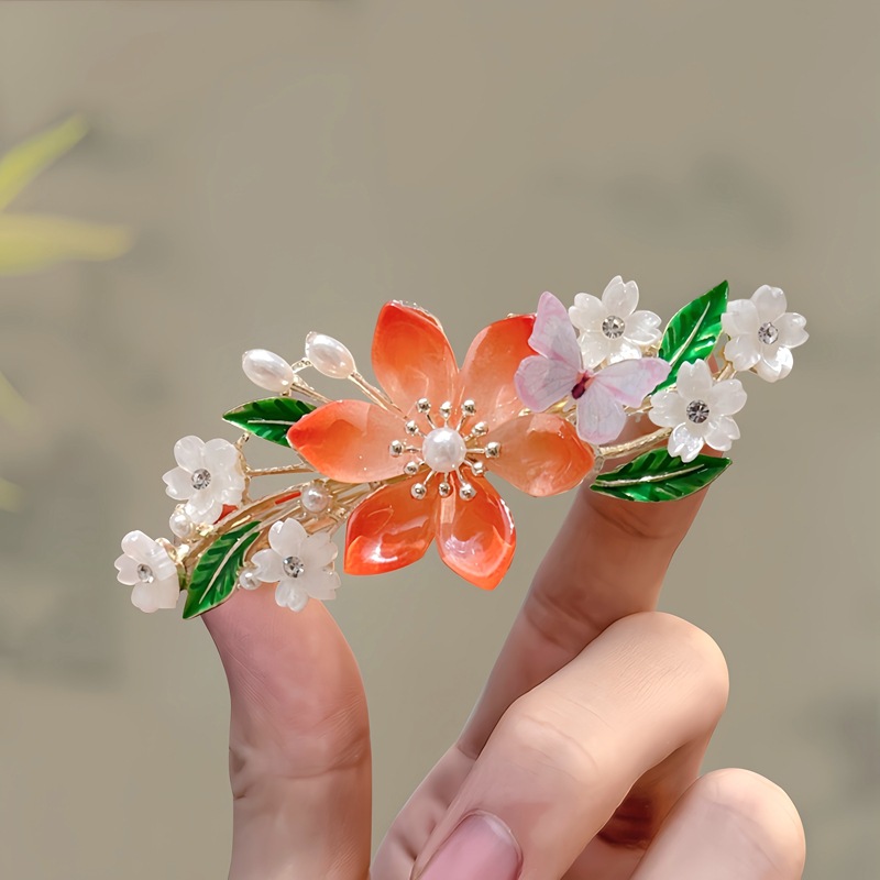 골동품 난초 버클플라워 나비 진주 머리핀 새로운 중국 복고풍 머리 반 넥타이 헤어핀 봄 한후 헤드웨어스토어 가기