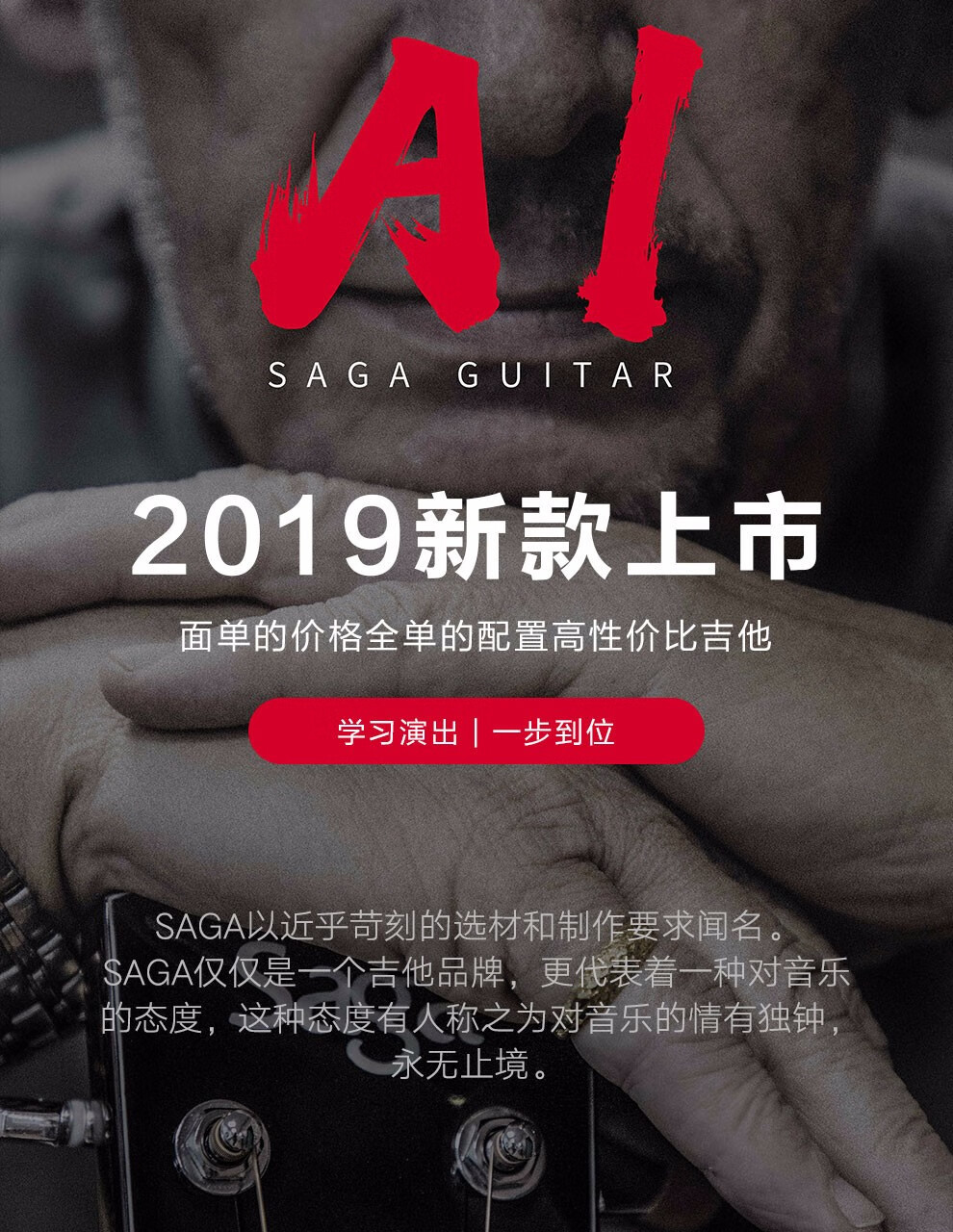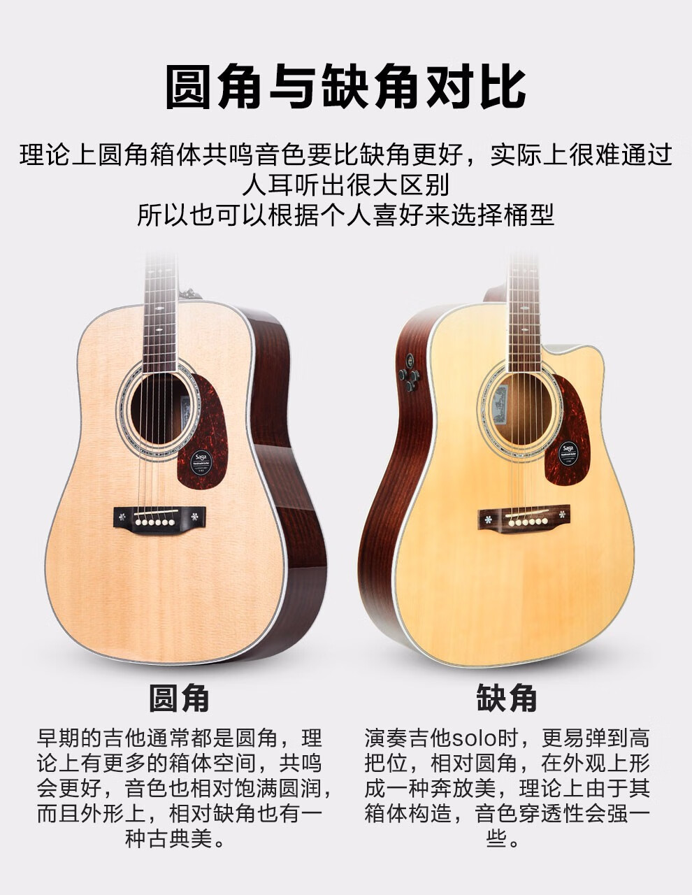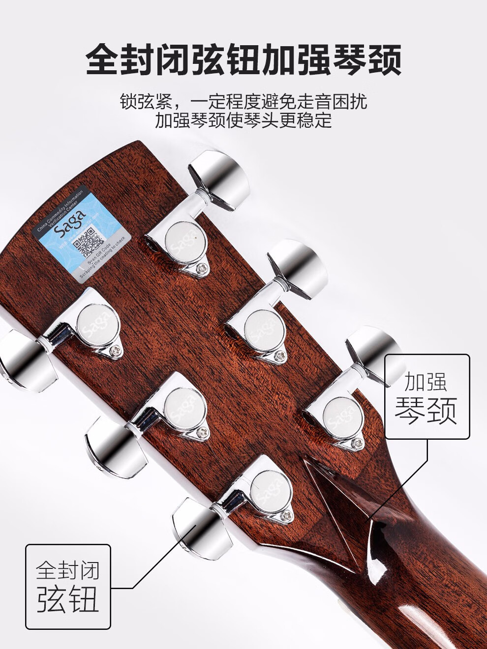 사가 (SAGA) 남성과 여성을위한 풀 싱글 기타 A1 시리즈 포크 초보자 무지 싱글 플레이트 사가 기타 악기