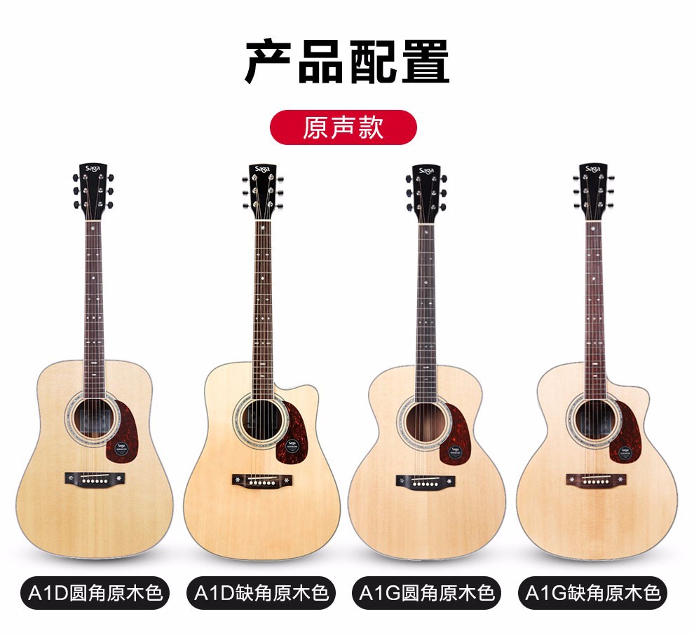 사가 (SAGA) 남성과 여성을위한 풀 싱글 기타 A1 시리즈 포크 초보자 무지 싱글 플레이트 사가 기타 악기스토어 가기