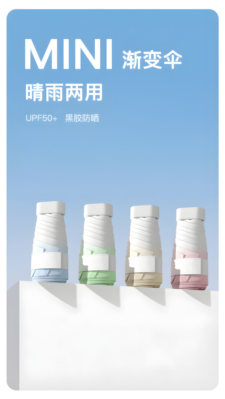 평면 5 배 그라디언트 미니 우산 간단한 초경량 선 스크린 양산 우산 경량 소형 자외선 방지 접이식 우산 도매