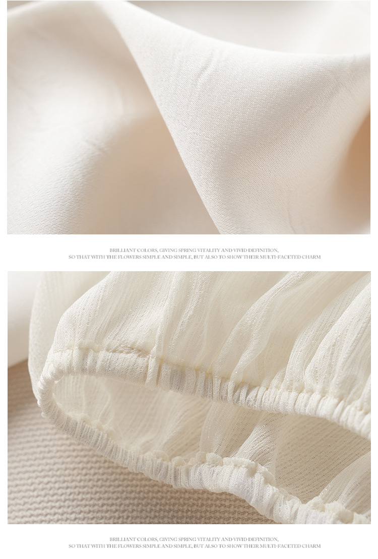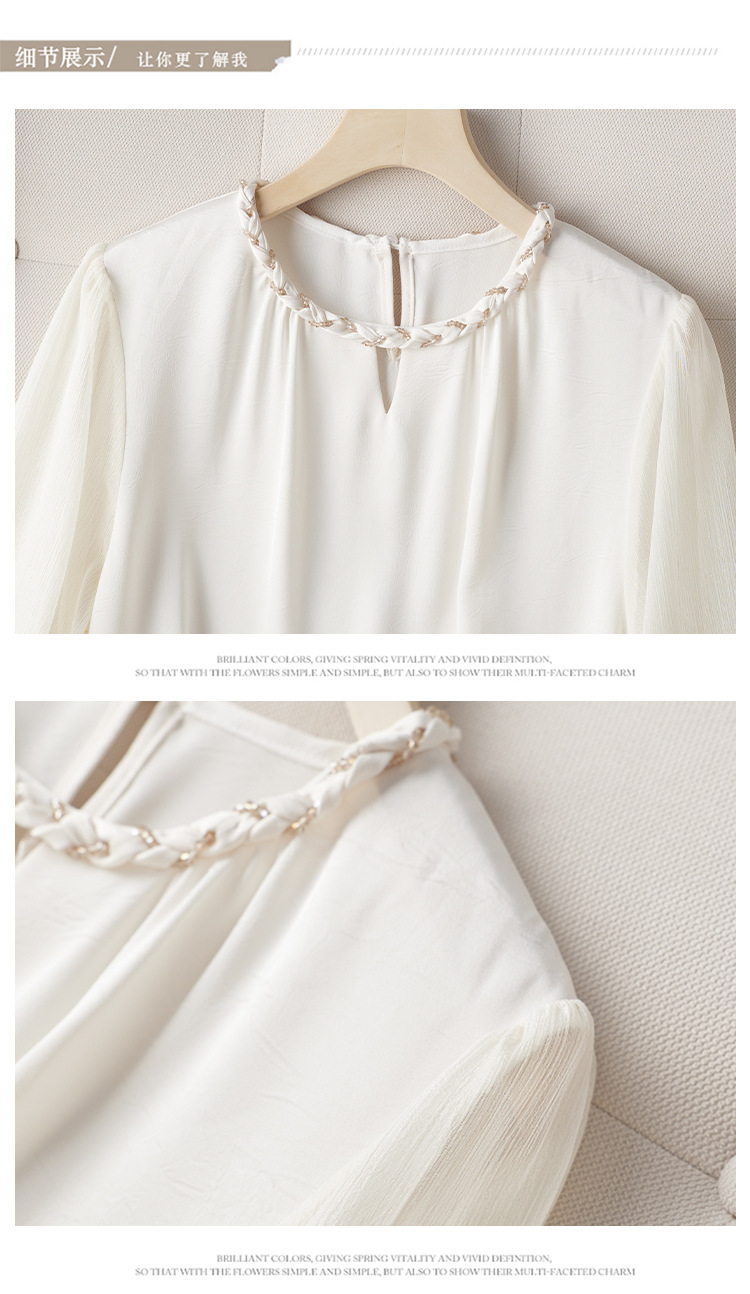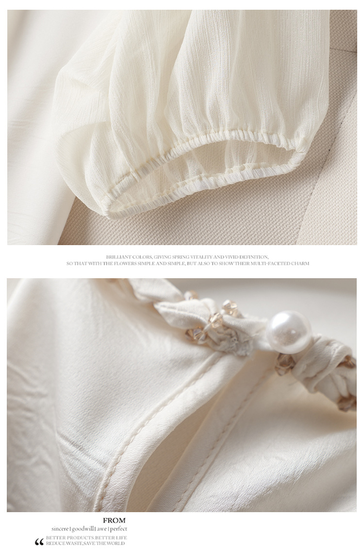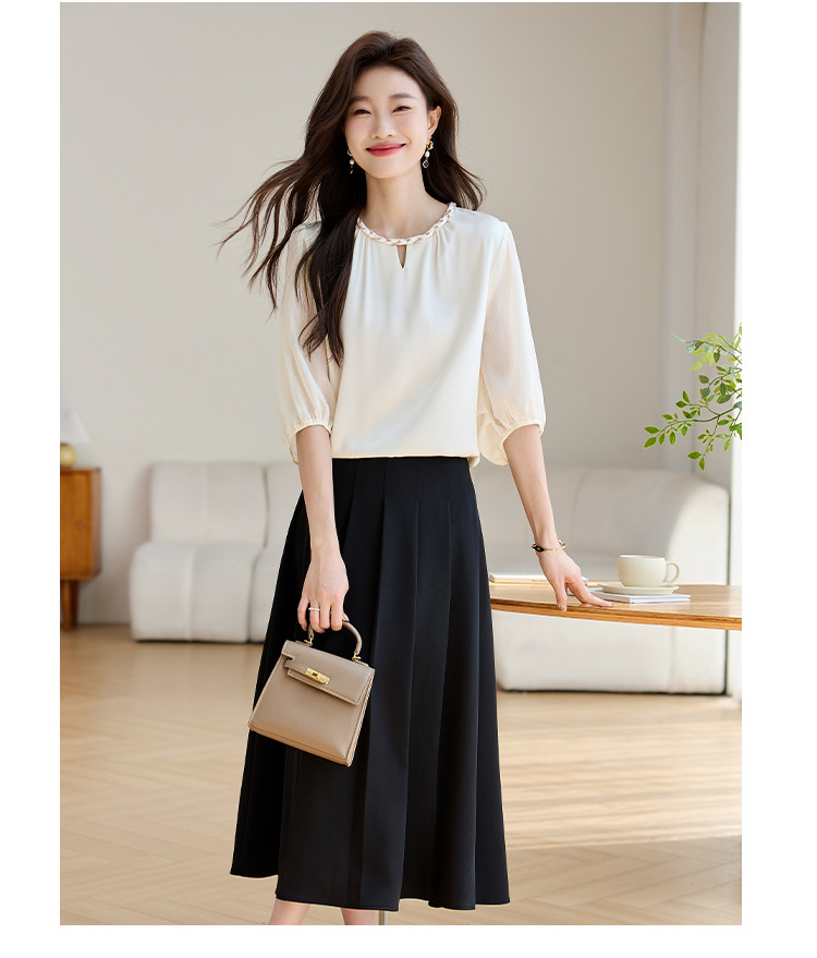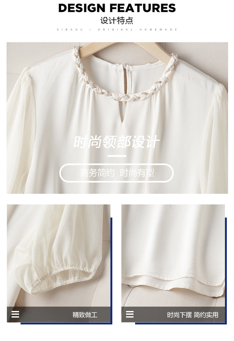 2024 년 여름 새로운 라운드 넥 우아한 느슨한 배꼽 덮음 쉬폰 셔츠 여성용 하프 슬리브 패션 탑스토어 가기