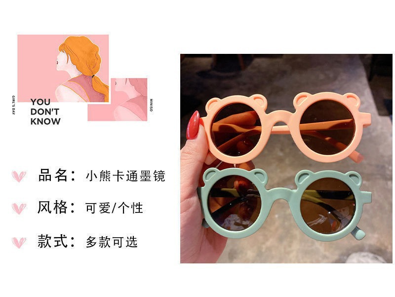 유행 곰 국경 선글라스 어린이 귀여운 슈퍼 귀여운 자외선 방지 선글라스 아기 유행 사진 만화 안경스토어 가기