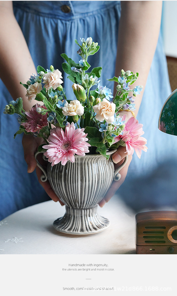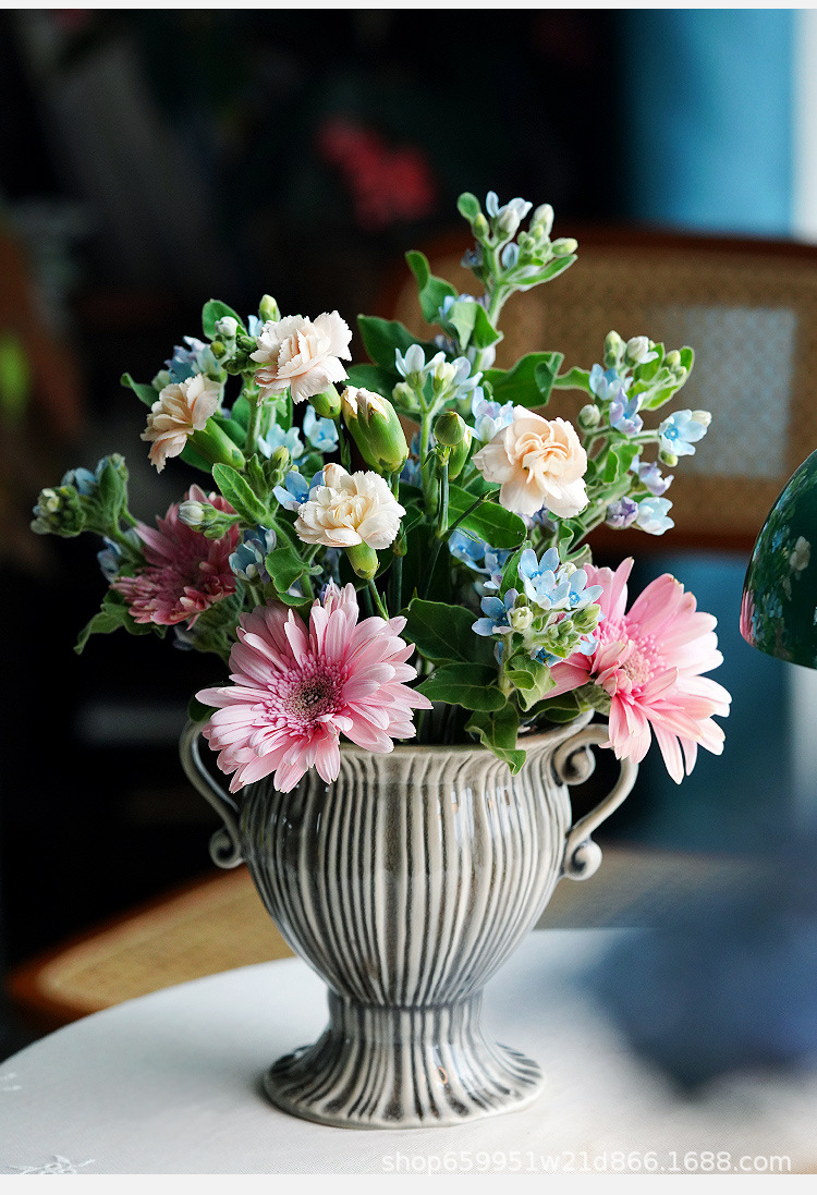 빈티지 꽃병 유럽식 세라믹 말린 꽃 꽃 장식 간단한 데스크탑 장식 미국식 수경 꽃병