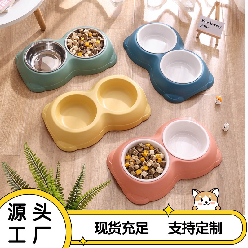 미니 베어 더블 보울 고양이 그릇 더블 보울 사용하기 쉬운 개 그릇 고양이 분지 바닥 미끄럼 방지 노크 스테인레스 스틸 애완 동물 그릇스토어 가기