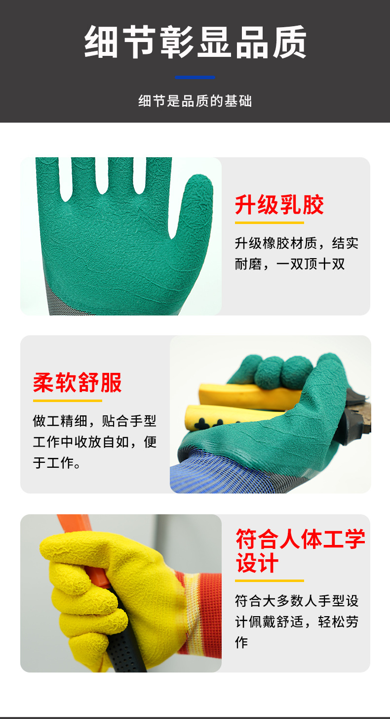 제조 업체 타이어 고무 노동 보호 장갑 도매 공장 내마모성 통기성 피부 친화적 인 편안한 안전 보호 노동 보호 장갑스토어 가기