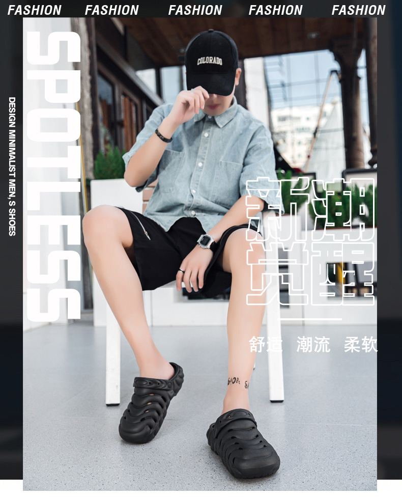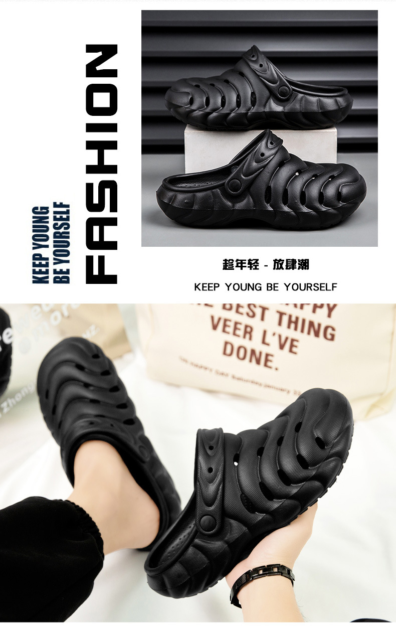 배설물 단색 구멍 신발을 밟다 남성 여름 야외 착용 두꺼운 밑창 미끄럼 방지 슬리퍼 야외 패션 비치 샌들
