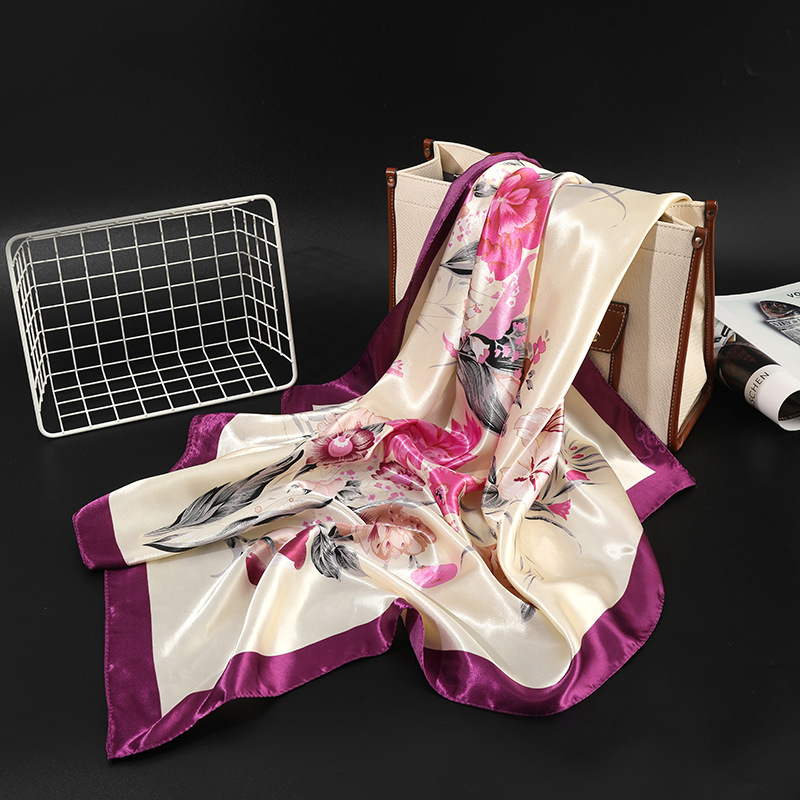 여성 대형 스퀘어 스카프 90cm 선물 실크 스카프 봄과 가을 새 스카프 새틴 모방 실크 인쇄 큰 목도리 머리 스카프