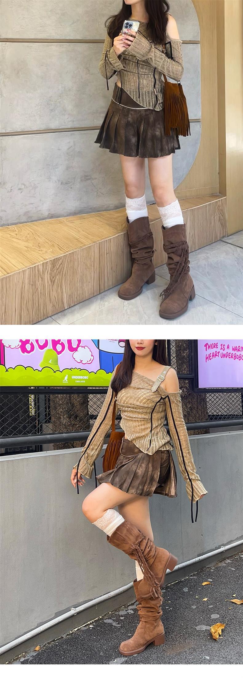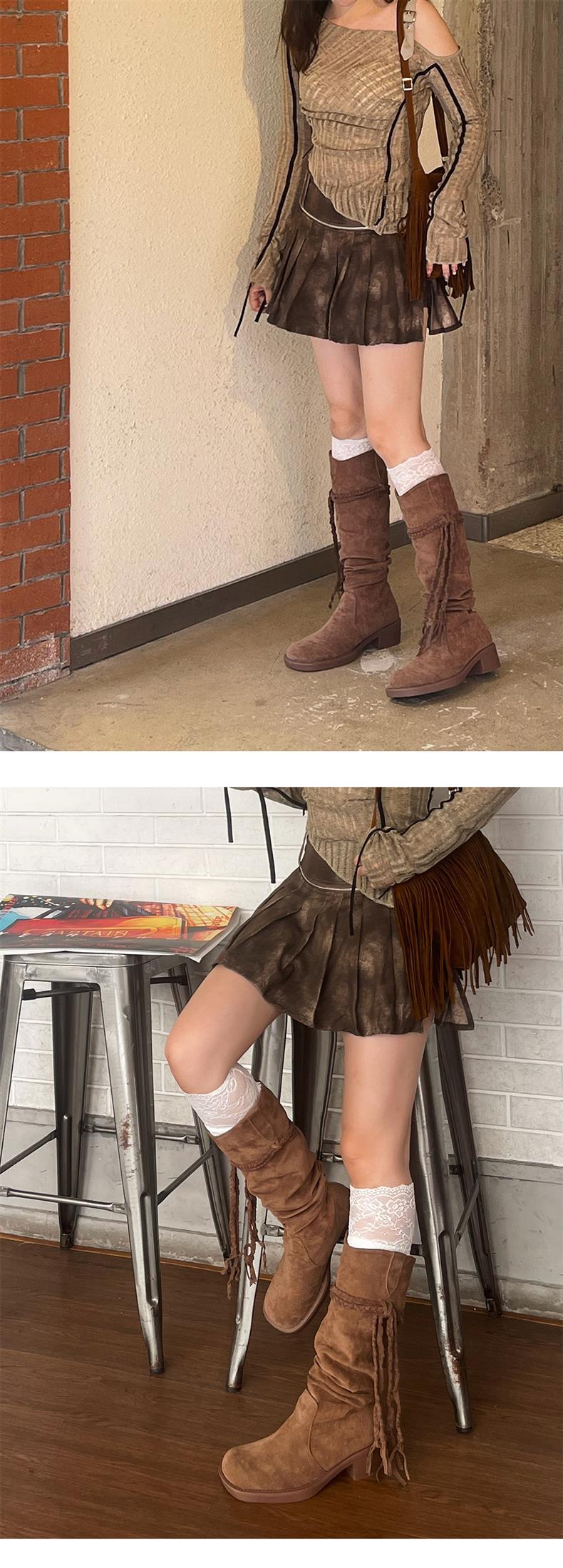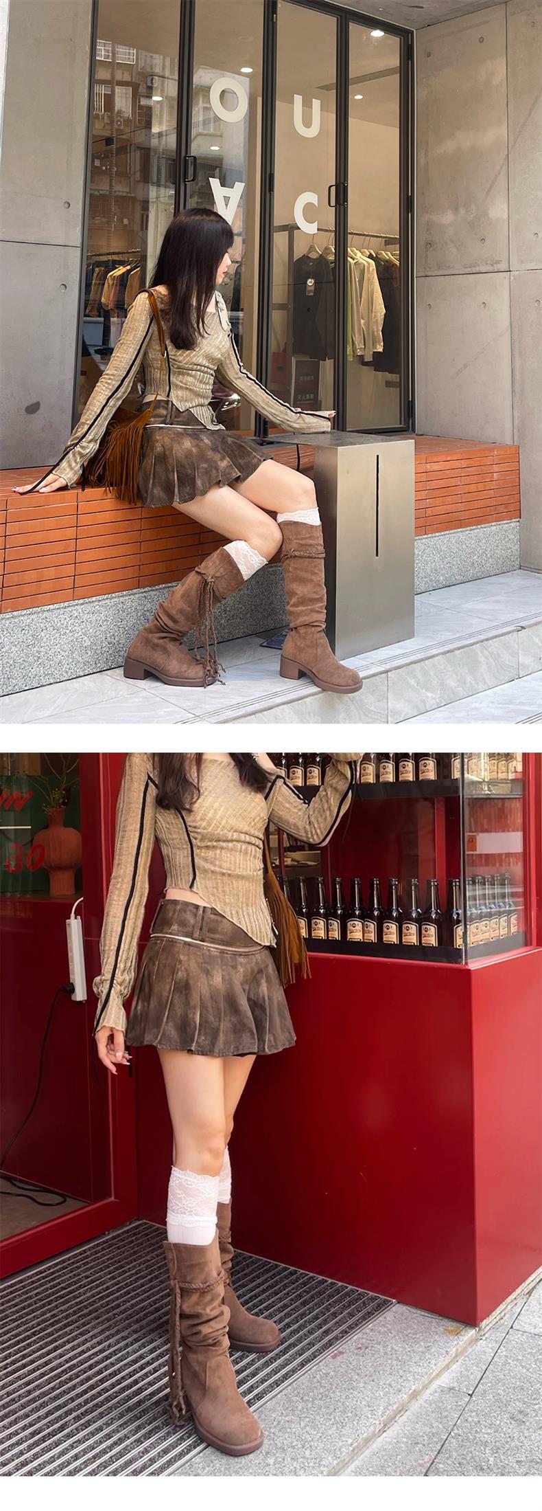 2024 가을 및 겨울 새 다크 브라운 술 부츠 레트로 폐기물 기사 부츠 영국 대학 힙 부츠 여성스토어 가기
