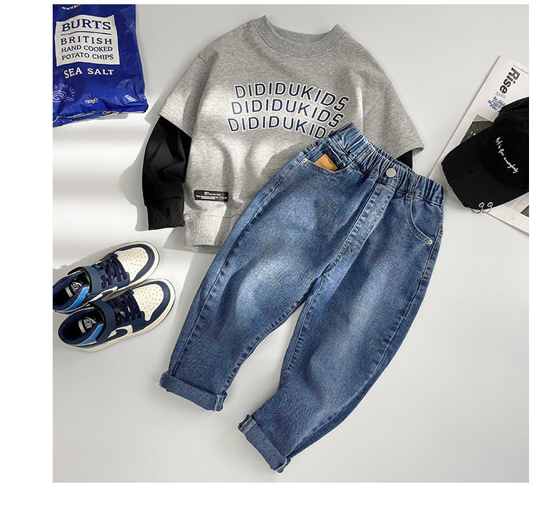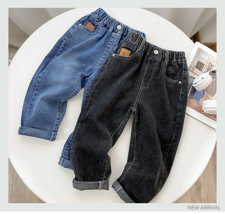 소년 2025 새로운 한국 스타일 청바지 아동복 느슨한 바지 봄, 가을 얇은 스타일 유행 아동 가을 바지스토어 가기