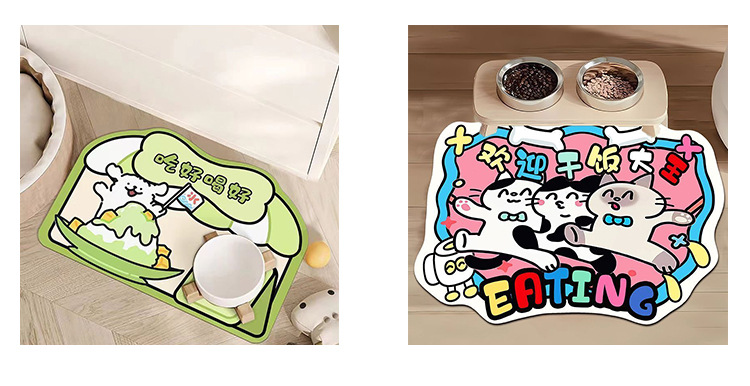 귀여운 만화 고양이 개 애완 동물 플레이스 매트 흡수성 미끄럼 빠른 건조 애완 동물 그릇 매트 diatom 진흙 좋은 관리 매트