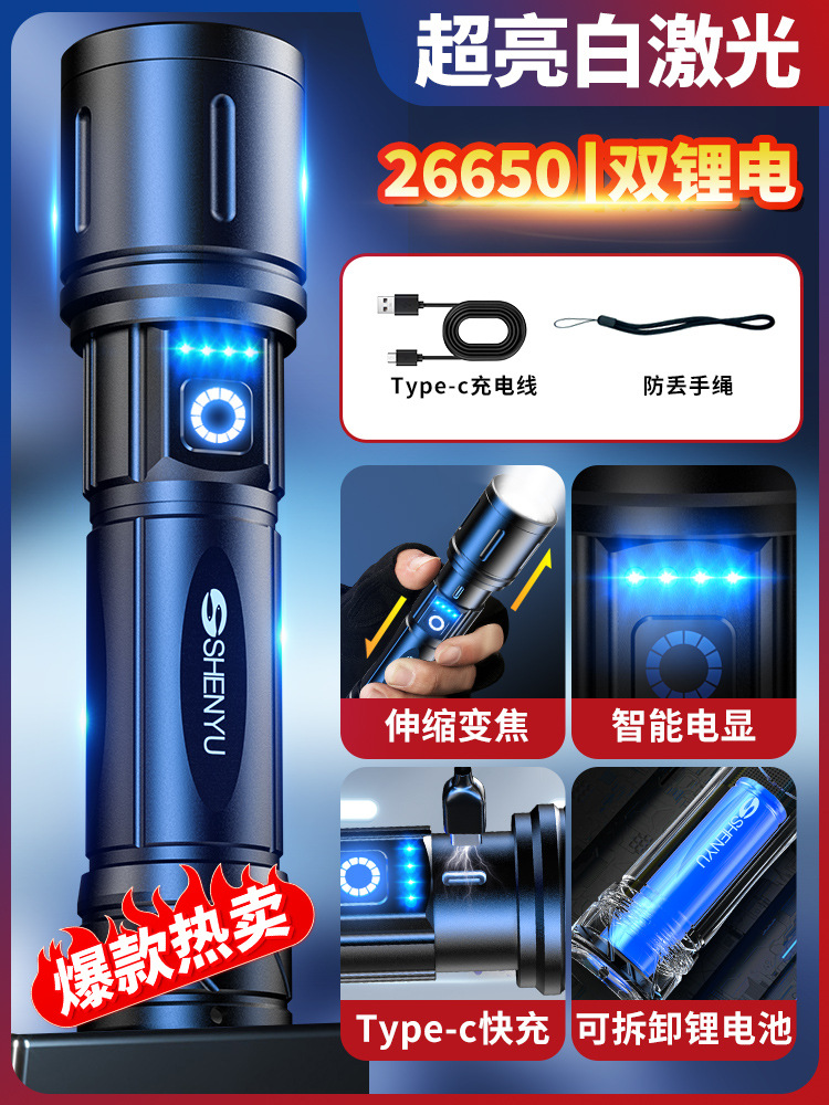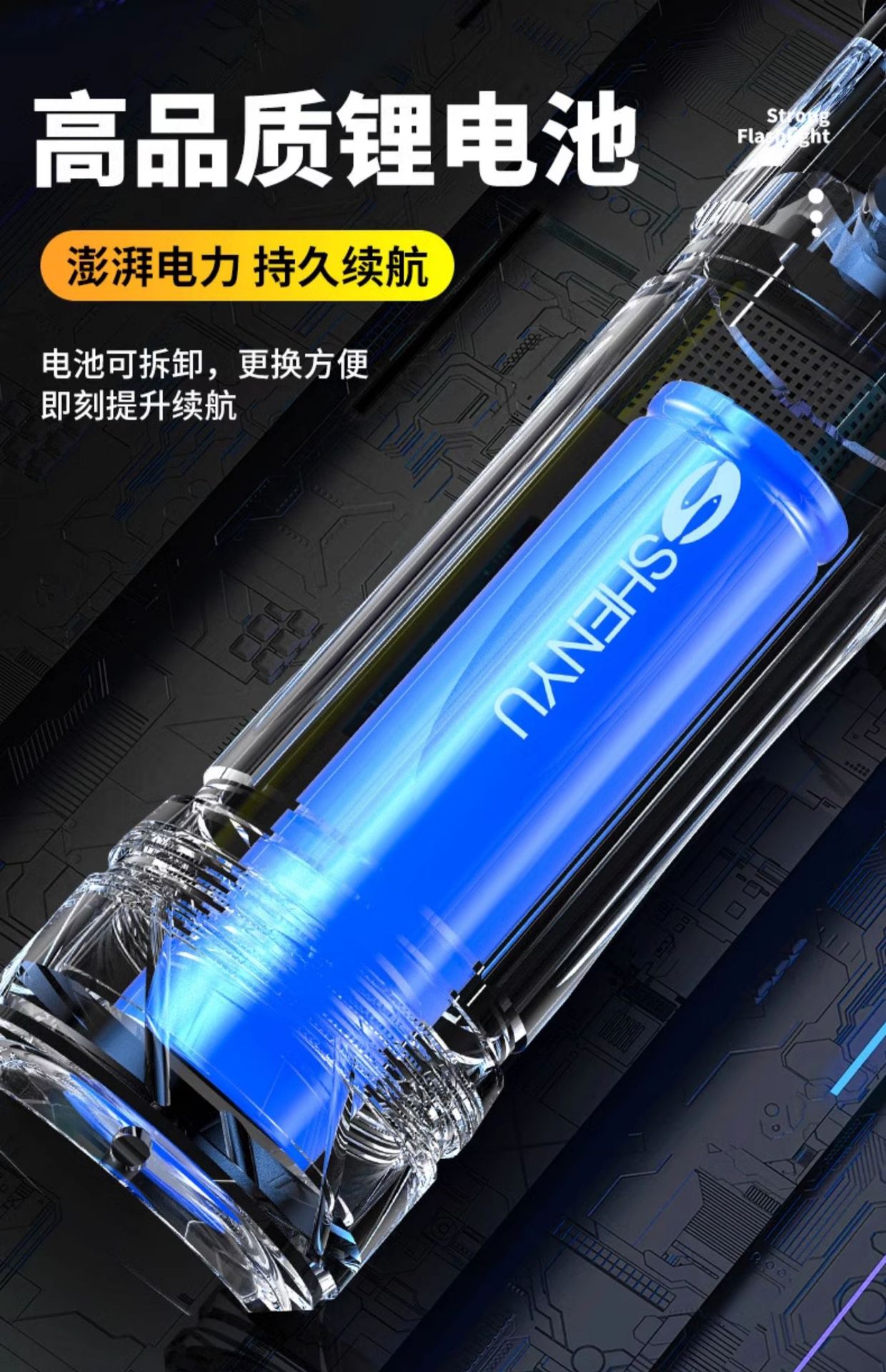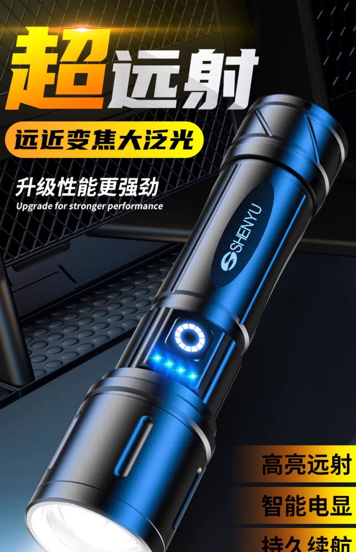 Shenyu의 새로운 손전등 강한 빛 충전식 야외 슈퍼 밝은 장거리 소형 미니 휴대용 홈 내구성 램프