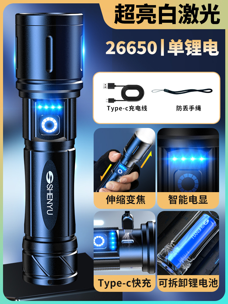 Shenyu의 새로운 손전등 강한 빛 충전식 야외 슈퍼 밝은 장거리 소형 미니 휴대용 홈 내구성 램프스토어 가기