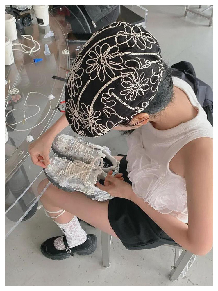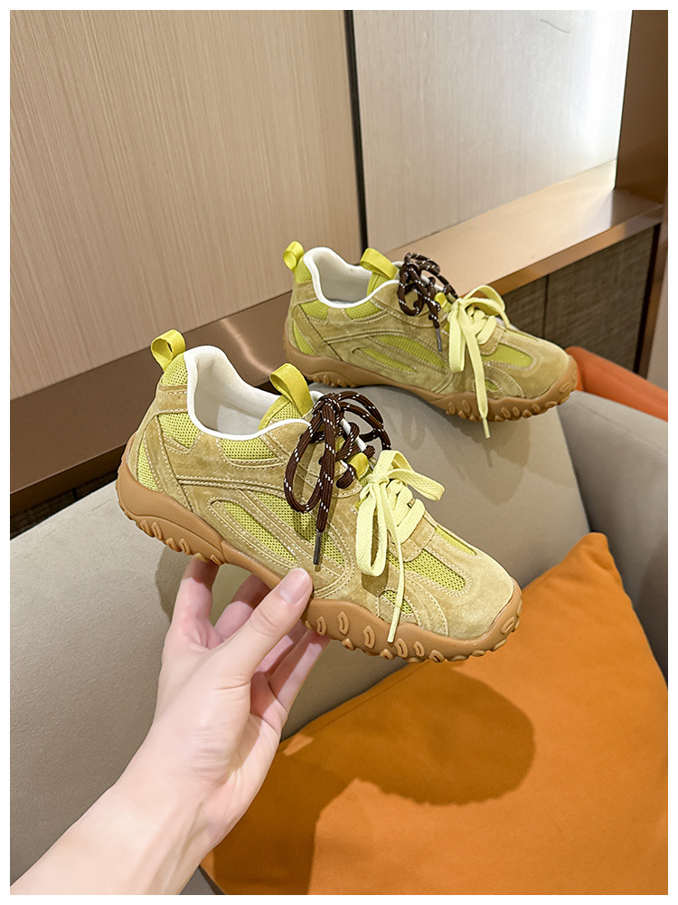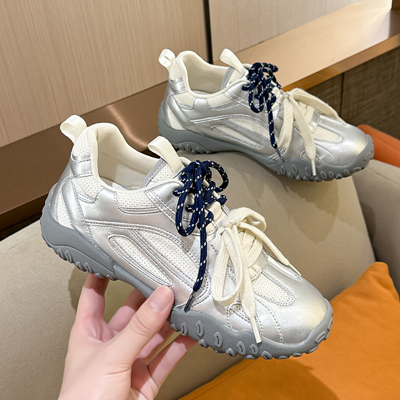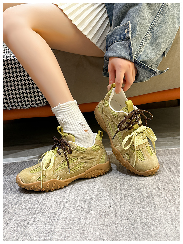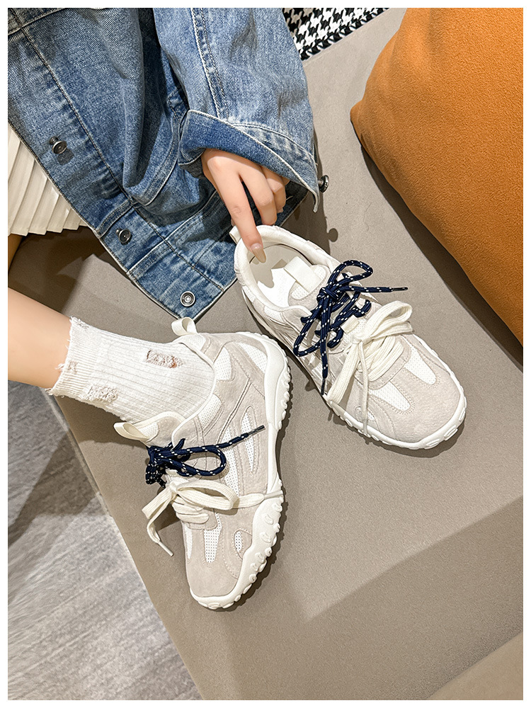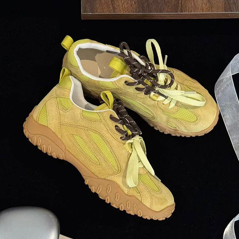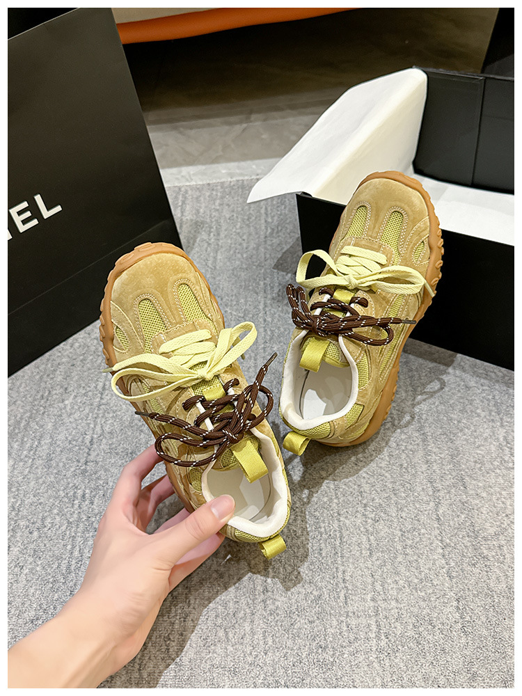 여름 새로운 메쉬 캐주얼 신발 여성의 2024 통기성 운동화 두꺼운 단독 높이 증가 레트로 우체부 독일 훈련 신발 트렌디스토어 가기