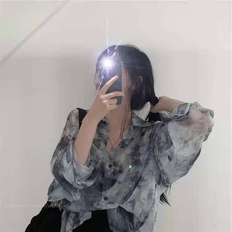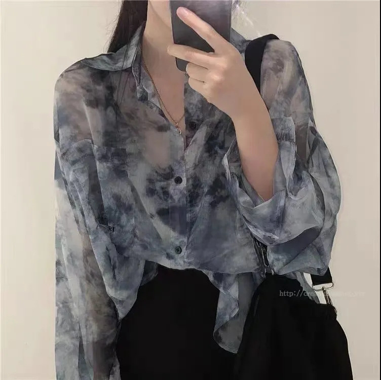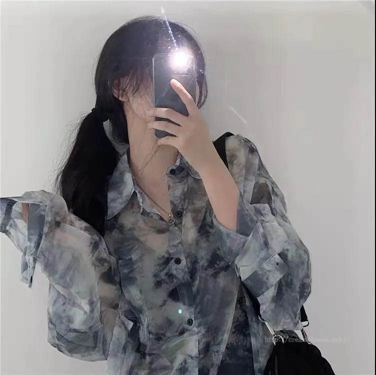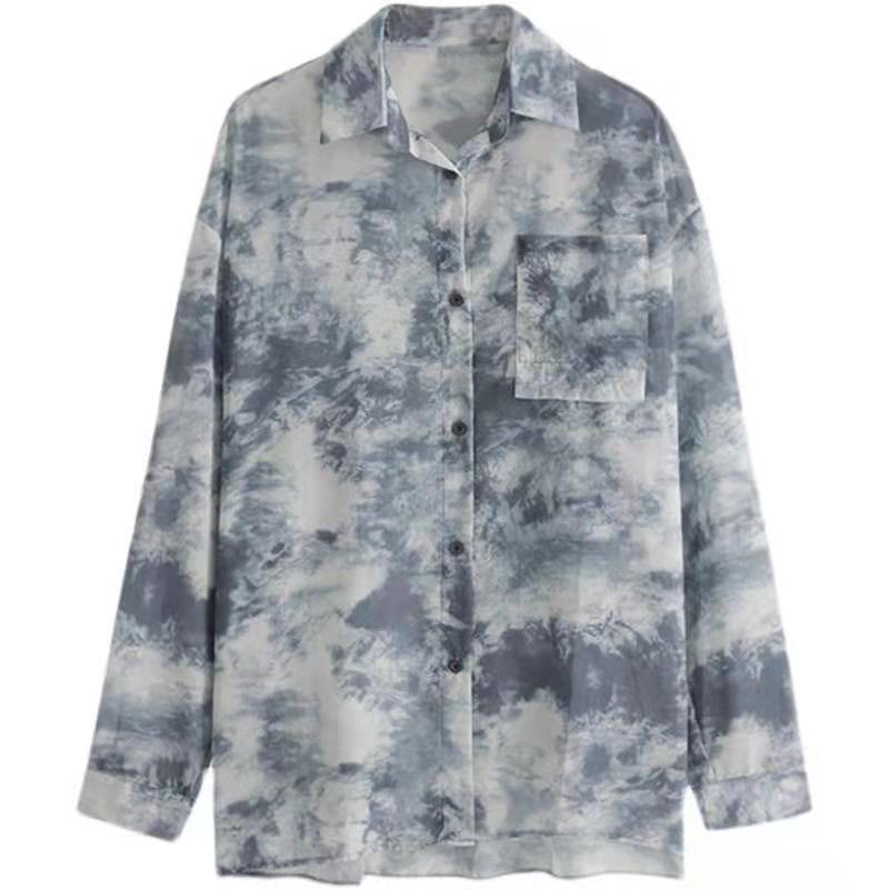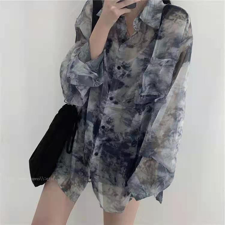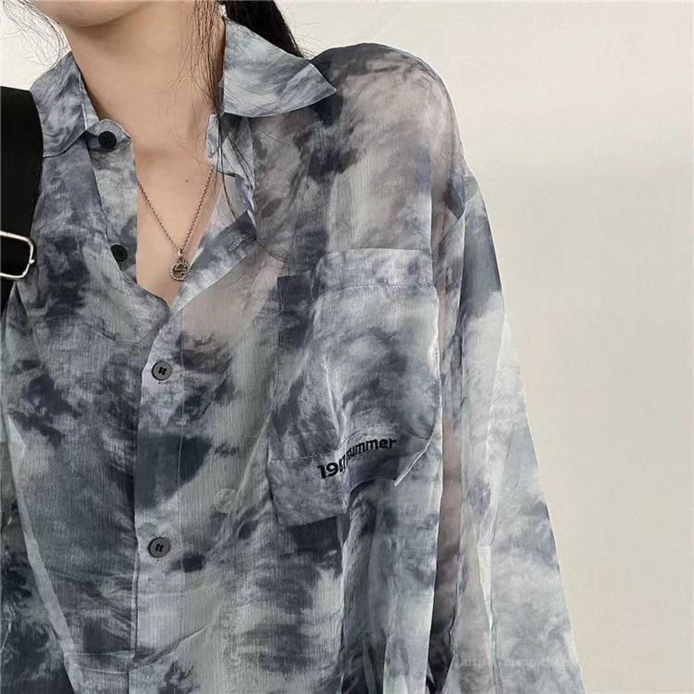 플러스 사이즈 얇은 태양 보호 타이-염료 셔츠 여성의 여름 통통녀 디자인 센스 아우터 쉬폰 플로랄 카디건 탑 재킷스토어 가기