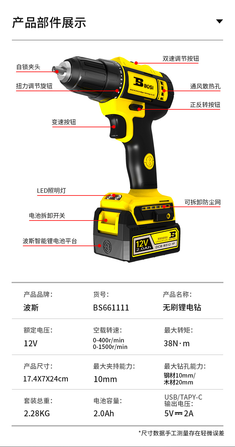 페르시아 12V 브러시리스 리튬 전동 드릴 충전식 핸드 드릴 스마트 음성 LED 전동 드라이버 BS661111스토어 가기