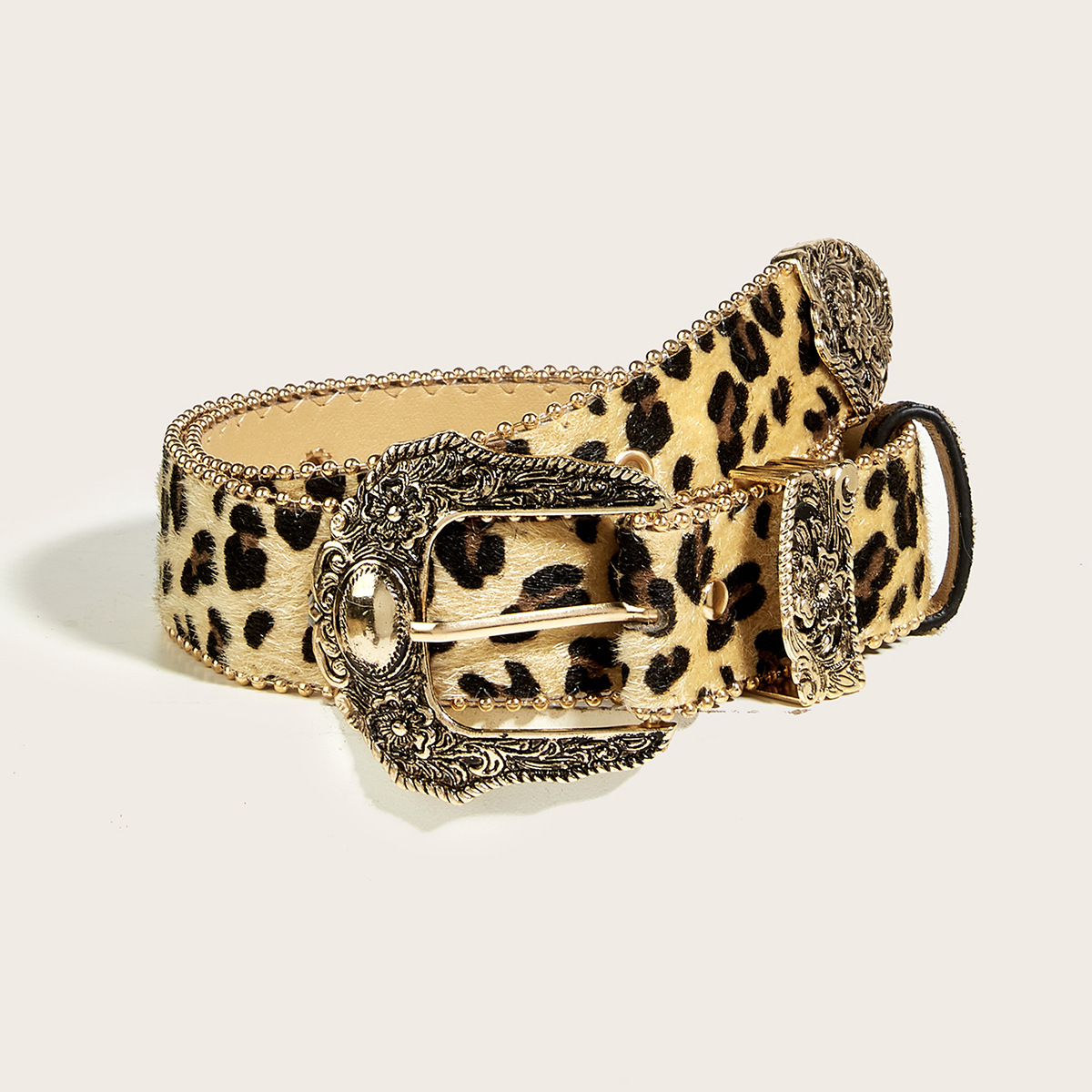 하위 문화 여성 레오파드 프린트 올 매치 핫 걸 벨트 여성 모피 소프트 페이스 벨트 고급 레트로 여성용 독특한 장식 벨트