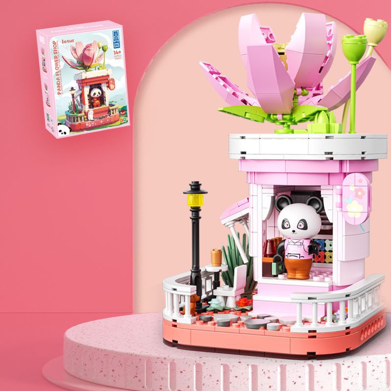 • Zhegao 663012-4-팬더 로터스 플라워 샵 (505PCS)