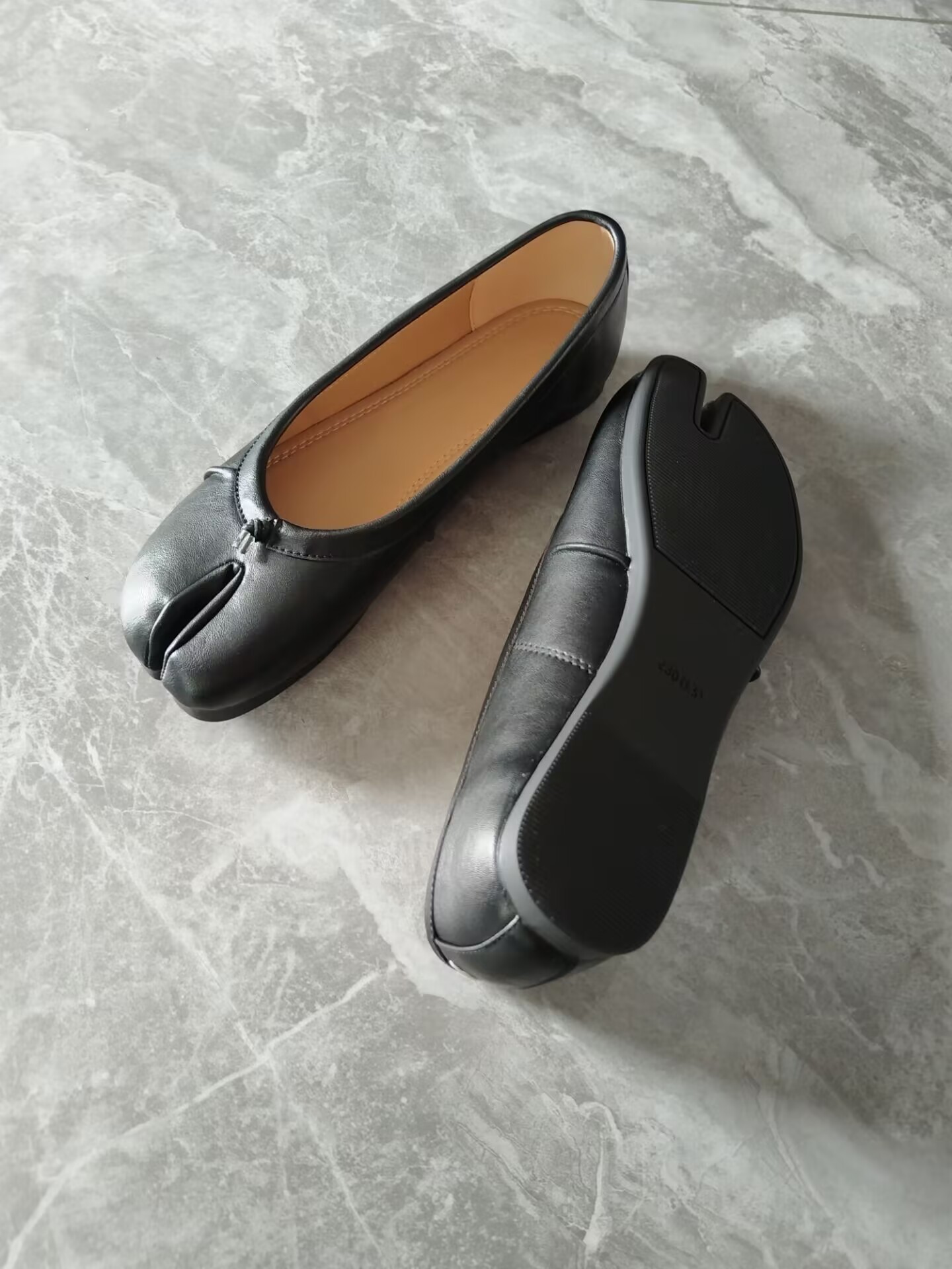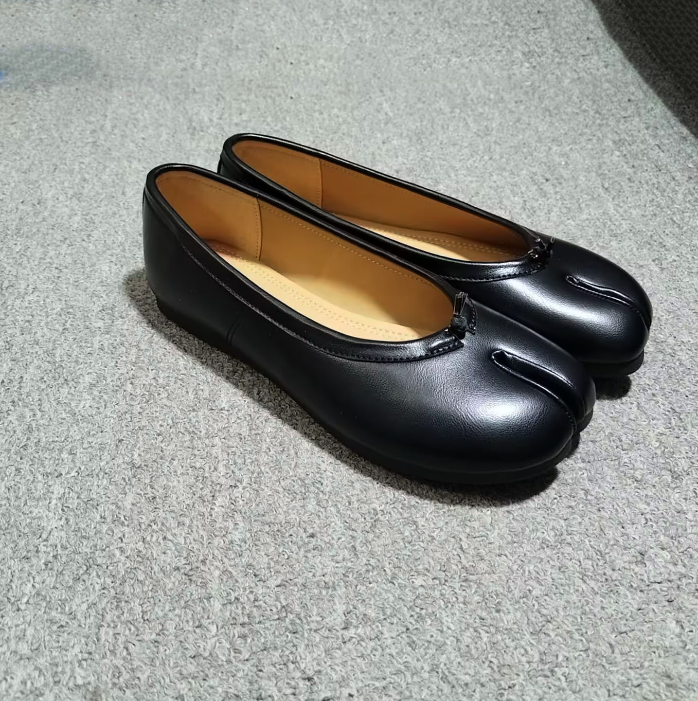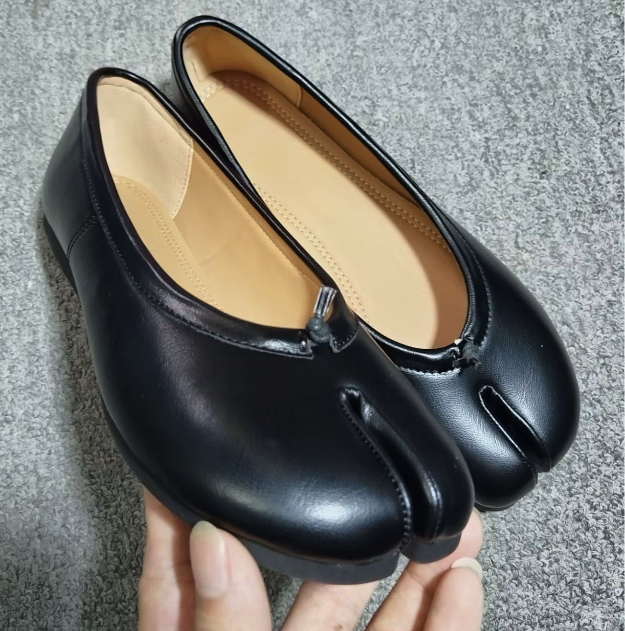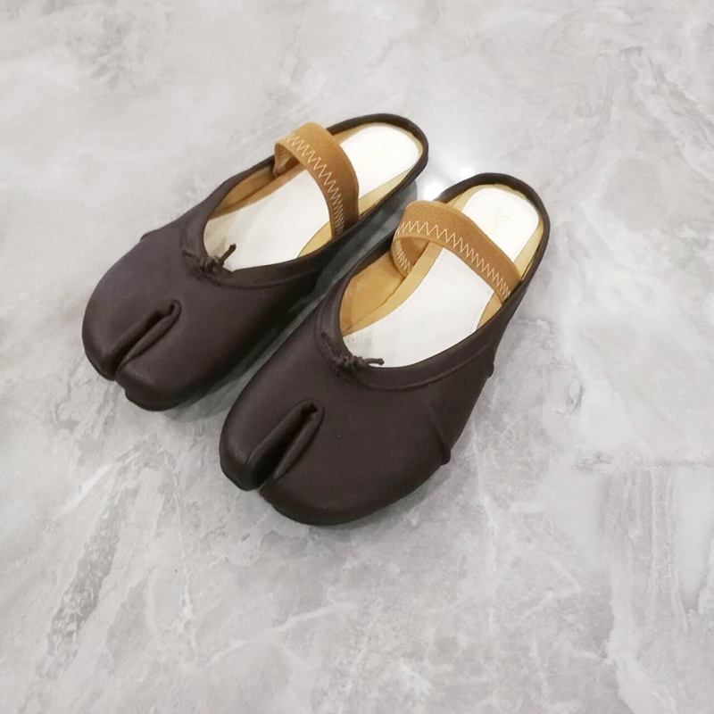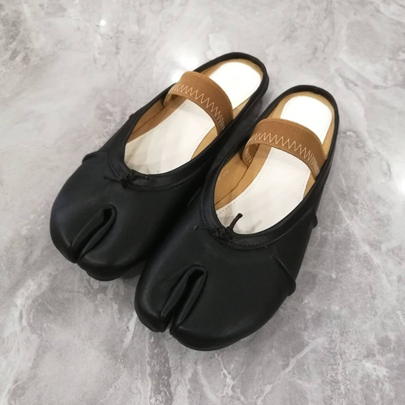 여성용 타비 스플릿 토 슈즈 2024 신상 니치 플리츠 발레 돼지발톱 얕은 입 리본 플랫 슈즈스토어 가기