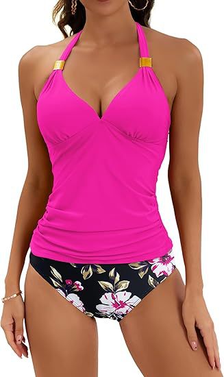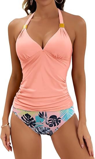 2024 아마존 대외 무역 새로운 여성 목 스트랩 비키니 비키니 단색 분할 투피스 수영복스토어 가기