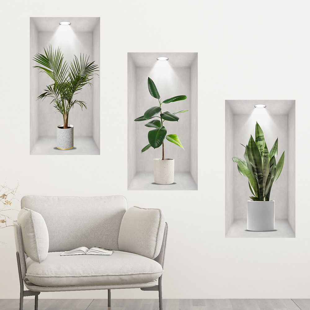 Yiyao DD224301 신선한 식물 화분 인쇄 벽지 거실 현관 분위기 장식 자체 접착 스티커
