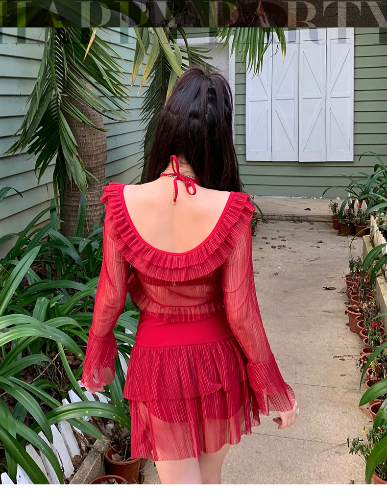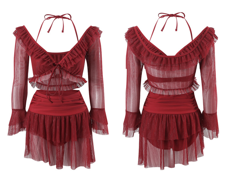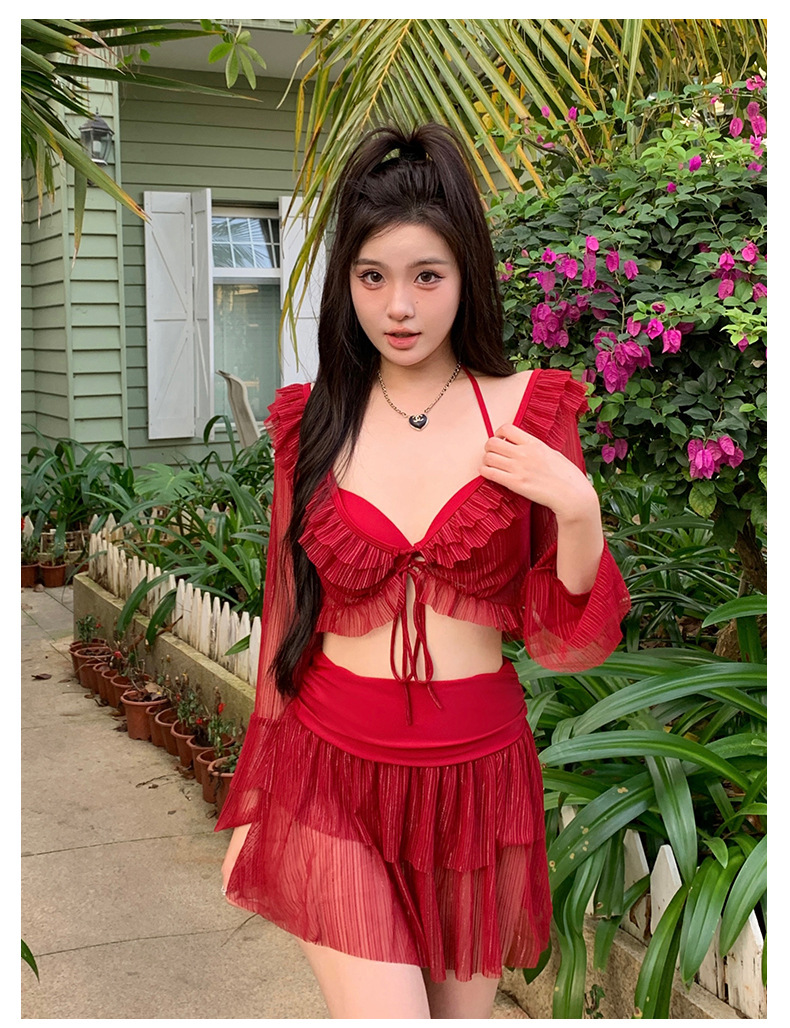 레드 뉴 비키니 4 피스 스플릿 수영복 여성용 스틸 브라켓 푸시업 작은 순수 스타일 섹시한 여름 수영복스토어 가기