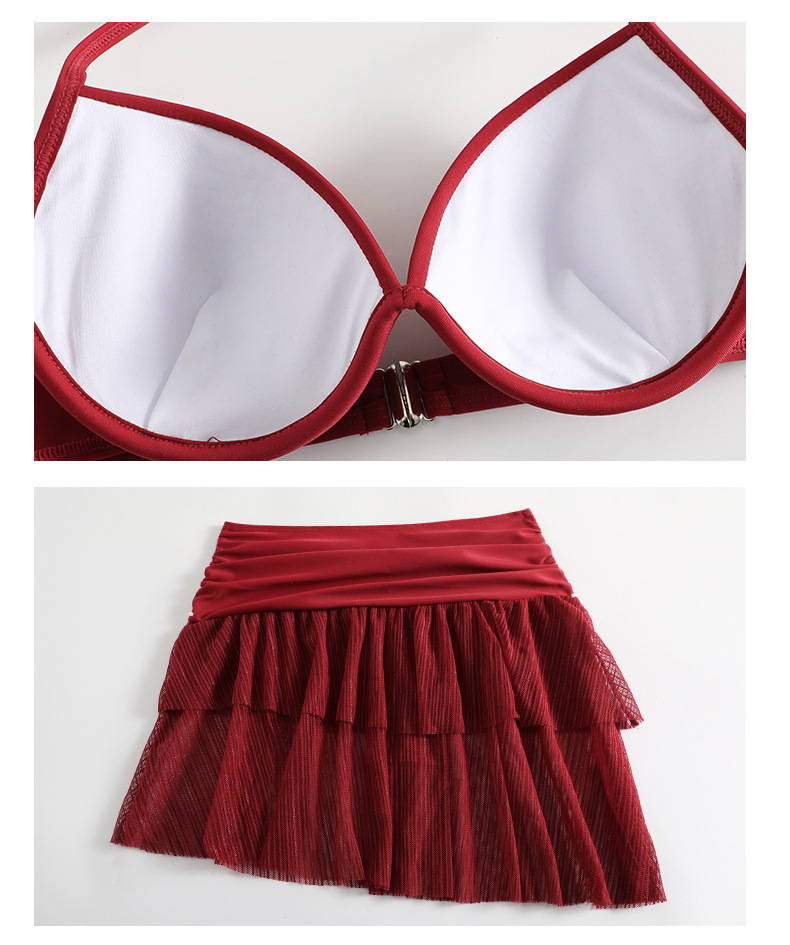 레드 뉴 비키니 4 피스 스플릿 수영복 여성용 스틸 브라켓 푸시업 작은 순수 스타일 섹시한 여름 수영복